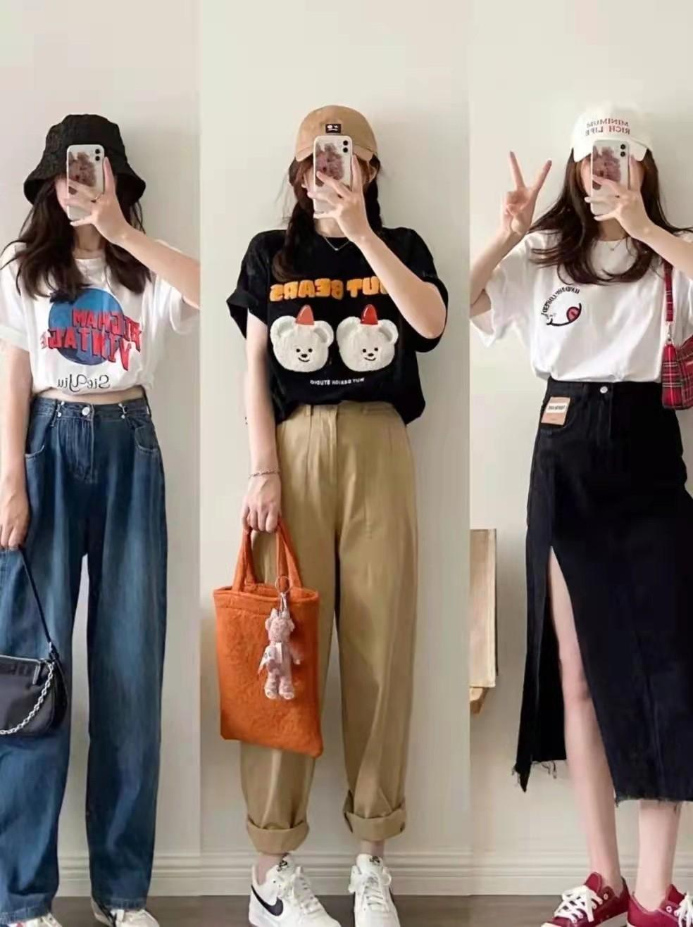 The combination of T-shirts and trousers can create a top-short-bottom look High matching effect. This matching method raises the waistline through reasonable matching, making the body proportions more perfect. For ladies who want to look taller or want to show long legs, this classic style The matching method of showing height is very easy to use.
