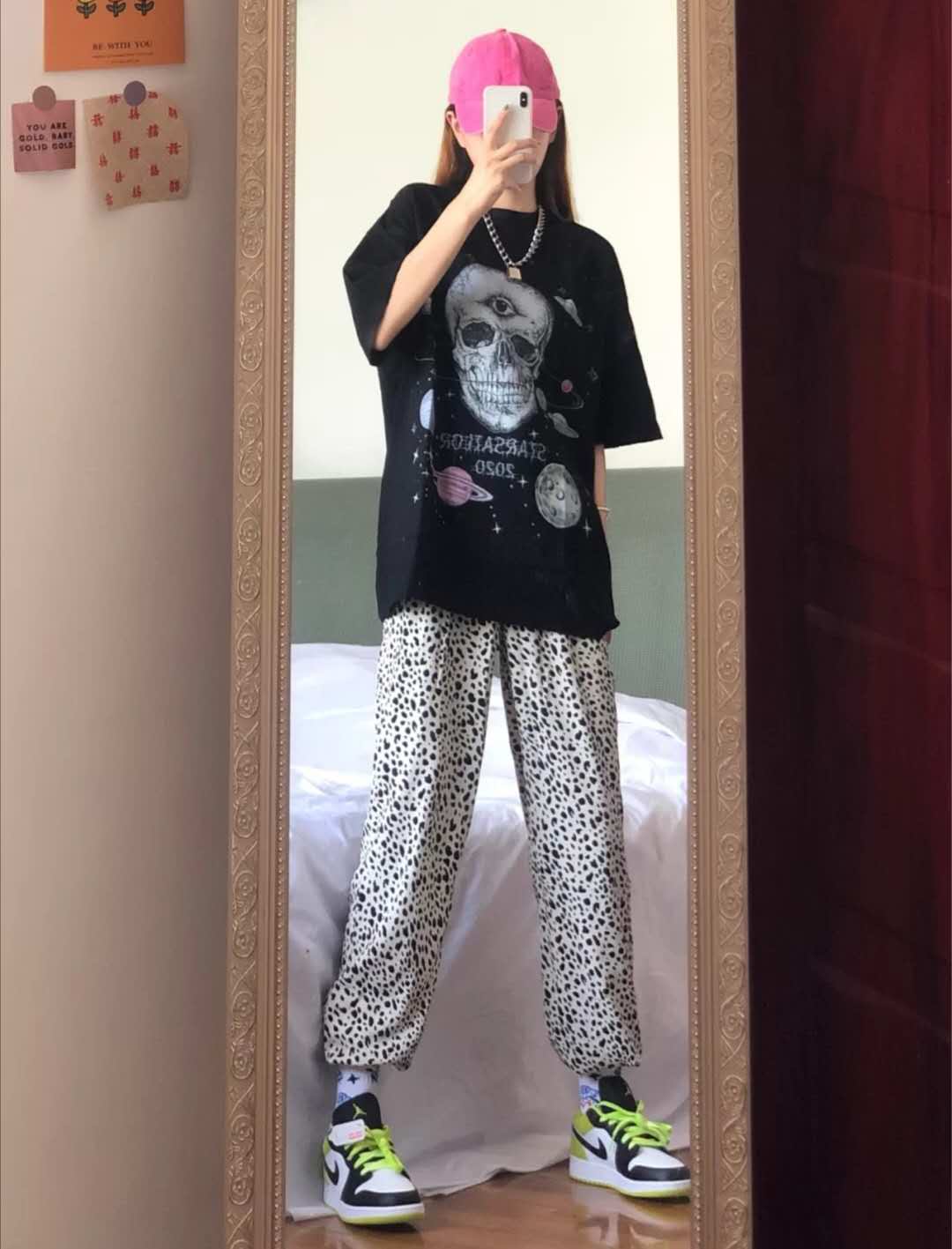 This t-shirt is so cool Got it! Guochao T-shirts really have a sense of design, and the shape is also good and slimming. Paired with leopard print pants, it’s a cool combination for you. It’s a super cool set!