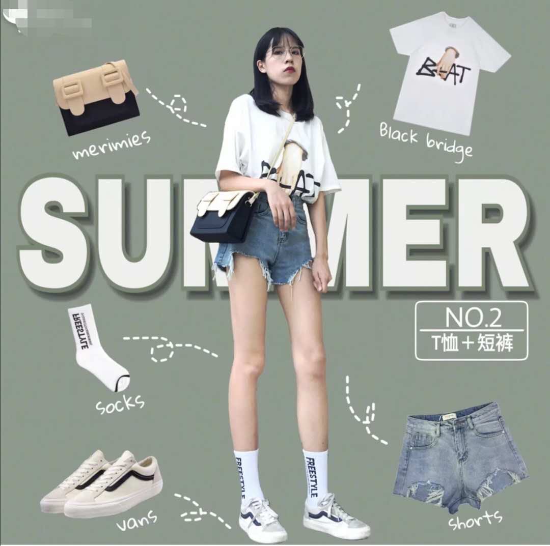 Although this set is very basic, I want to say Yes, the choice of shorts style is very important. The most leg-lengthening version is this short-in-the-middle torn style. Pair it with a designer T-shirt and mid-calf socks. A little care will make your match more special.