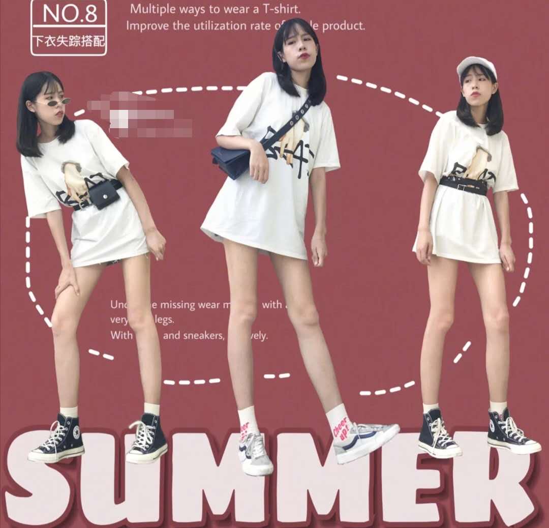 I always buy T-shirts in oversize sizes, just for The combination with missing bottoms is the first choice for lazy people. Sometimes, in order to be more special, I will add a belt or girdle to raise the waistline and make the legs look longer.