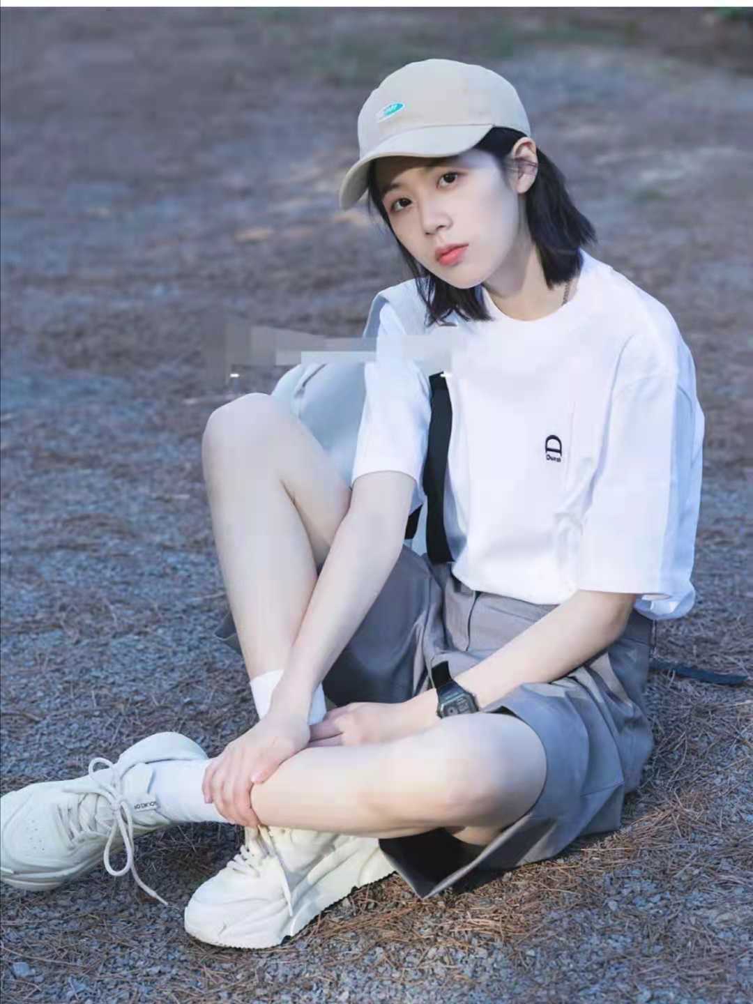 Summer T-shirt outfit: This outfit is a simple summer outfit. The top is a white loose T-shirt. Wearing white clothes in summer is refreshing and comfortable. The lower body is paired with gray five-point suit trousers. The trousers are made of light material. Comfortable, wearing white dad shoes that match the top.