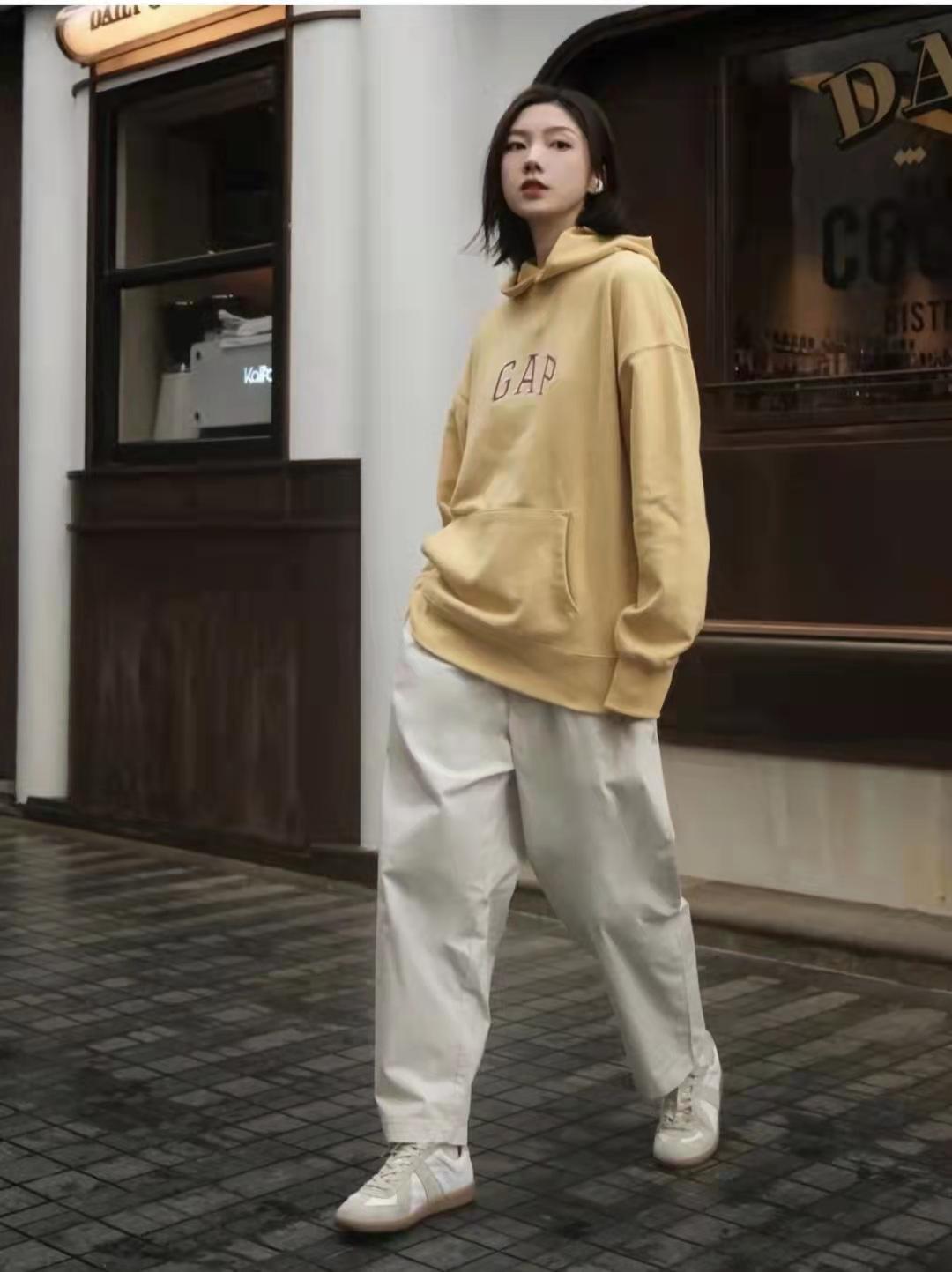 Sweatshirt outfit: soft, skin-friendly GAP soft sweatshirt, paired with loose-fitting casual pants, an outfit that doesn’t pick on your body or body type, and has a casual street feel!