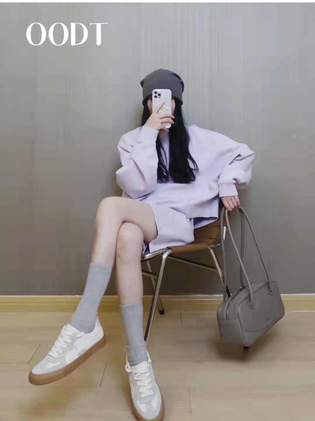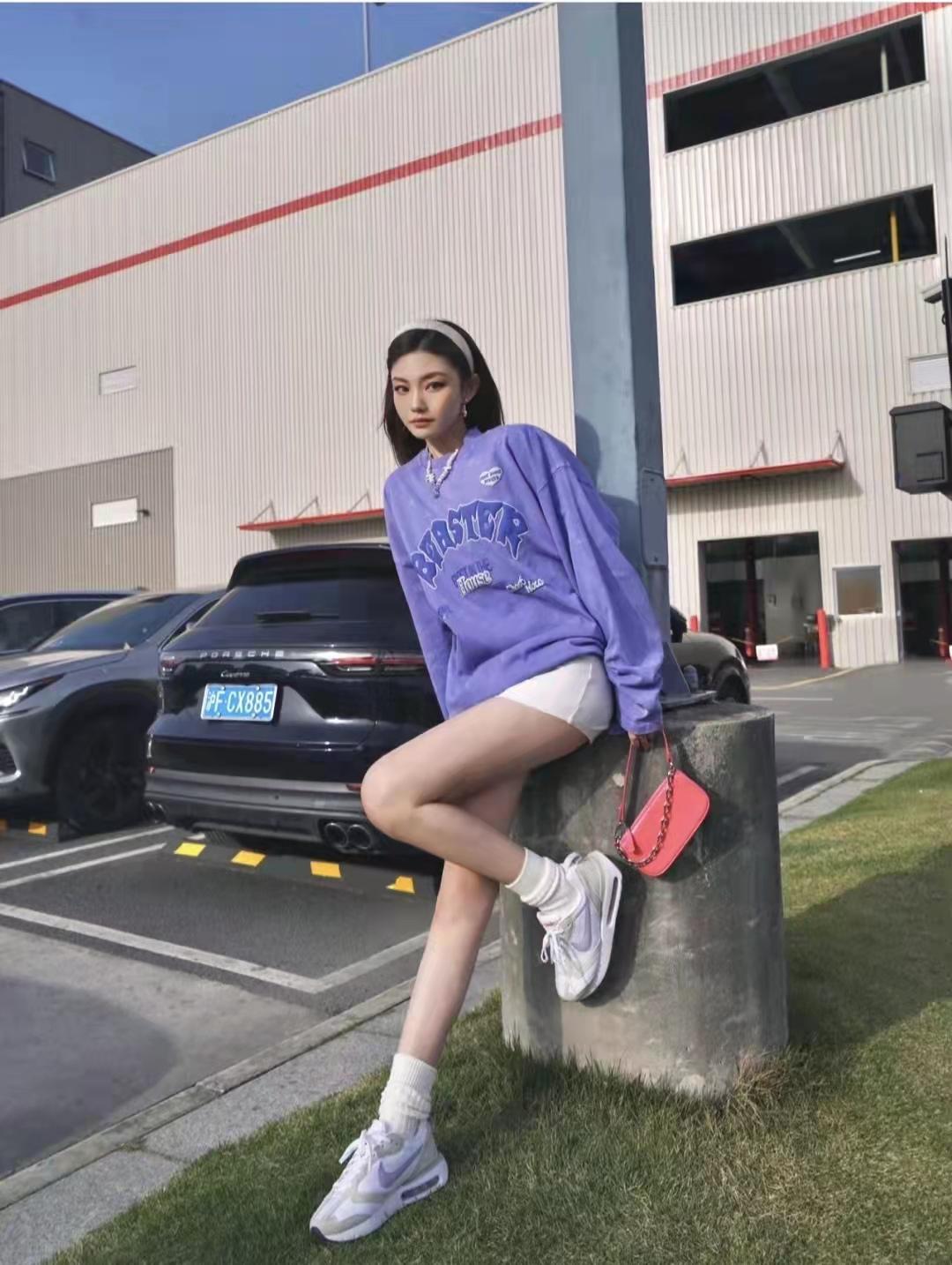 Sweatshirt outfit:How come there are so few outfits for spring outings? It’s taro purple, and the silhouette is very tolerant. The fabric is relatively soft, and there’s no terry inside, which is just right for spring. The purple and gray color scheme reveals a touch of luxury.