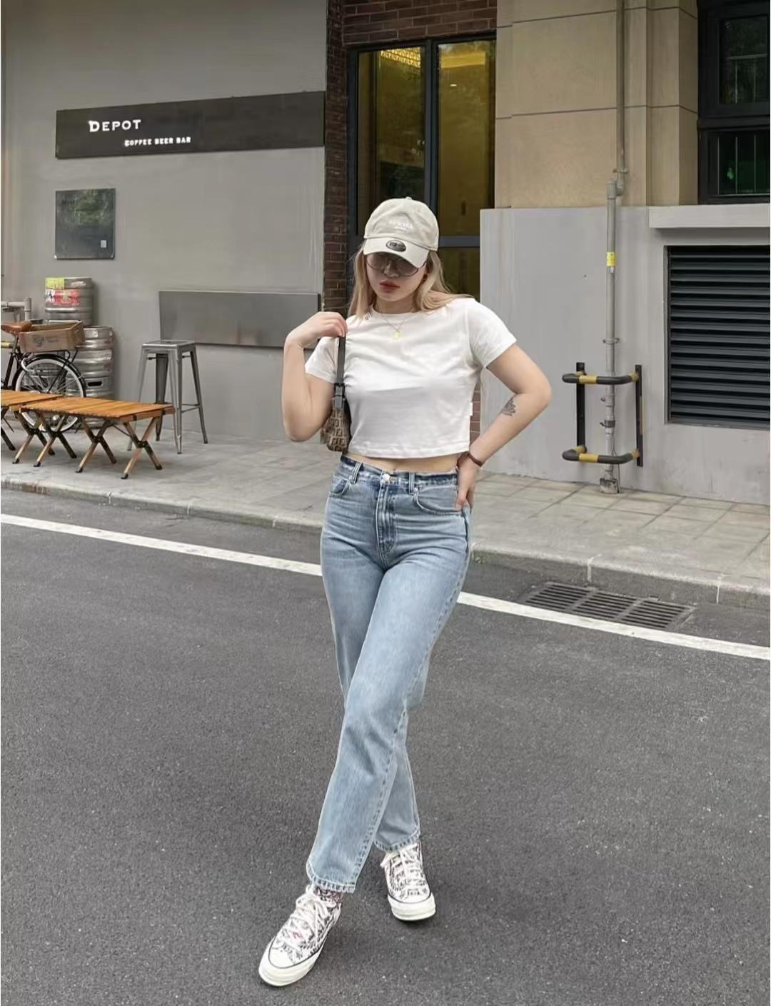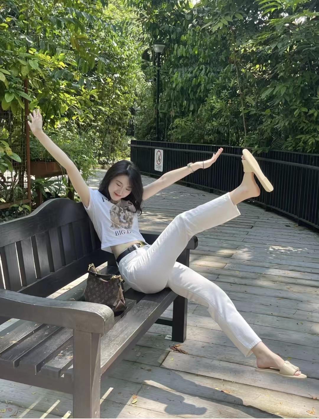 White jeans are really a versatile item in summer. The shape and fabric of this pair are really good. So awesome, so thin that you have no friends! I specially chose the straight version, which is more suitable for more occasions than the wide-legged and tight-fitting version. Paired with a white T-shirt, it looks girly.
