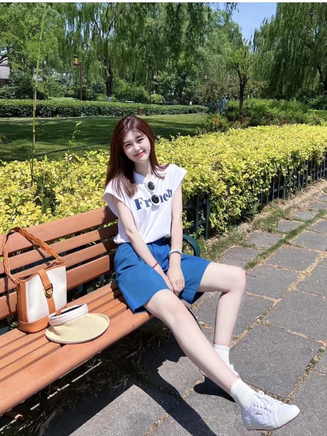 This summer refreshing white T+ medium pants set is really comfortable and beautiful! The white T-shirt is refreshing and clean in summer and is really comfortable, and the peacock blue Bermuda pants are really white! There are also pink slimming suit pants, which match well with white shoes and are especially suitable for daily commuting.