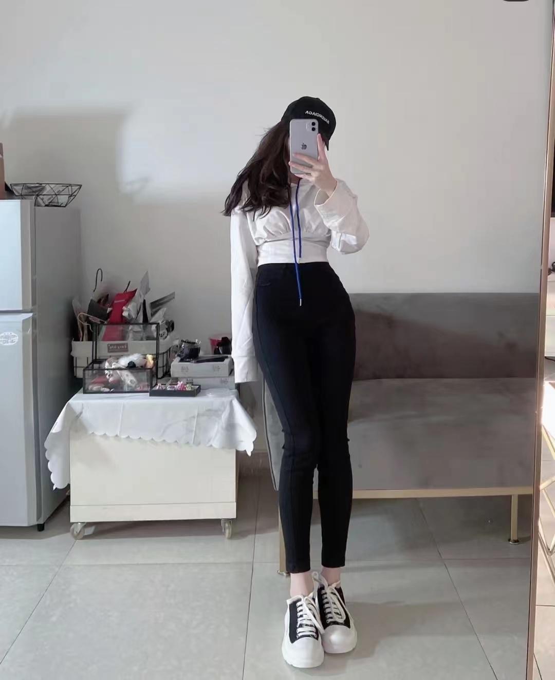 This combination really makes your legs look longer! A three-dimensional tailored sweatshirt is so important, it is easy to wear and does not make you look fat. The black sweatshirt has a simple design + pure cotton material, with thin velvet inside, which looks good and keeps you warm at the same time.