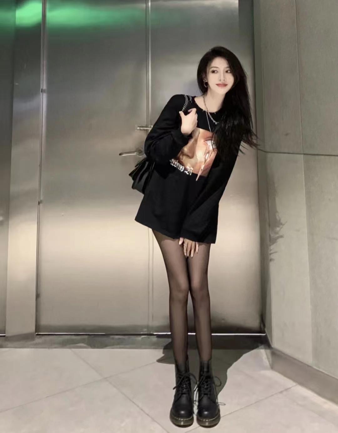 Sweatshirt + black silk shorts yyds, I learned this look from Yang Mi. It looks so good if the lower body is missing. It shows the length of the legs. I have compiled 3 sets of sweatshirts. Sweatshirt + shorts/skirt + black silk are really good. Absolutely.