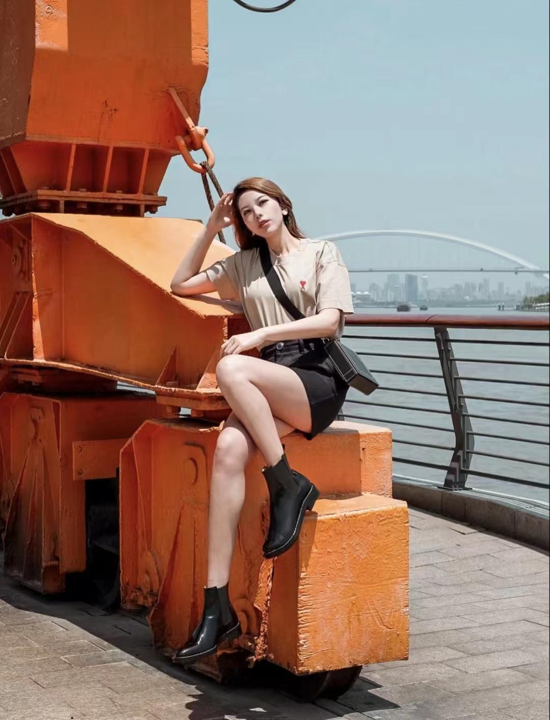 An energetic girl with short sleeves and a T-shirt. The oatmeal-colored top is slim and white, and it is so cute with the red heart. , the upper body of the short skirt is also very textured. The deep navy color not only brings a sense of vitality but also brings a sense of calmness. The length is just right. Paired with handsome short boots, it is sweet and cool. It makes you walk with wind.