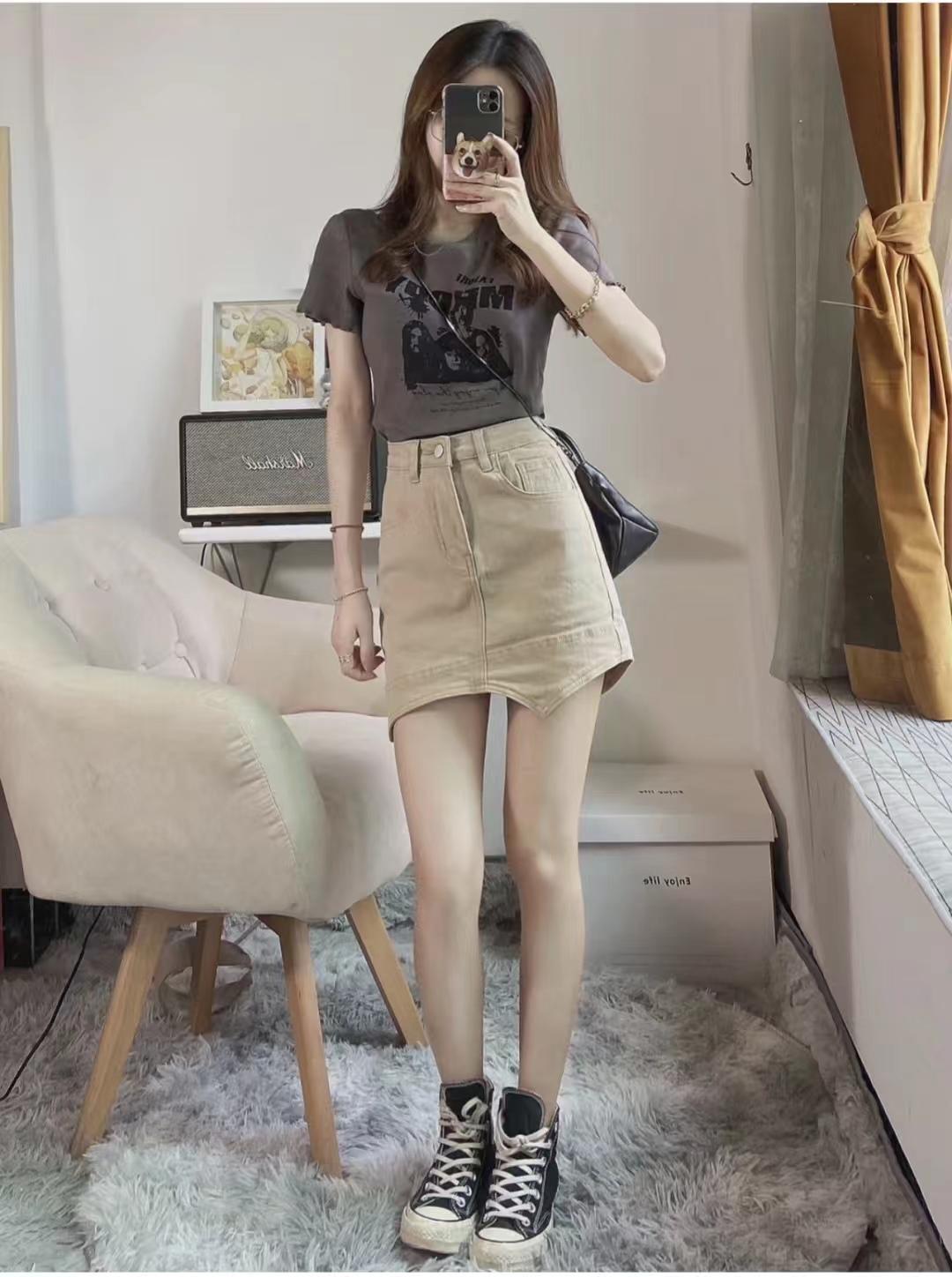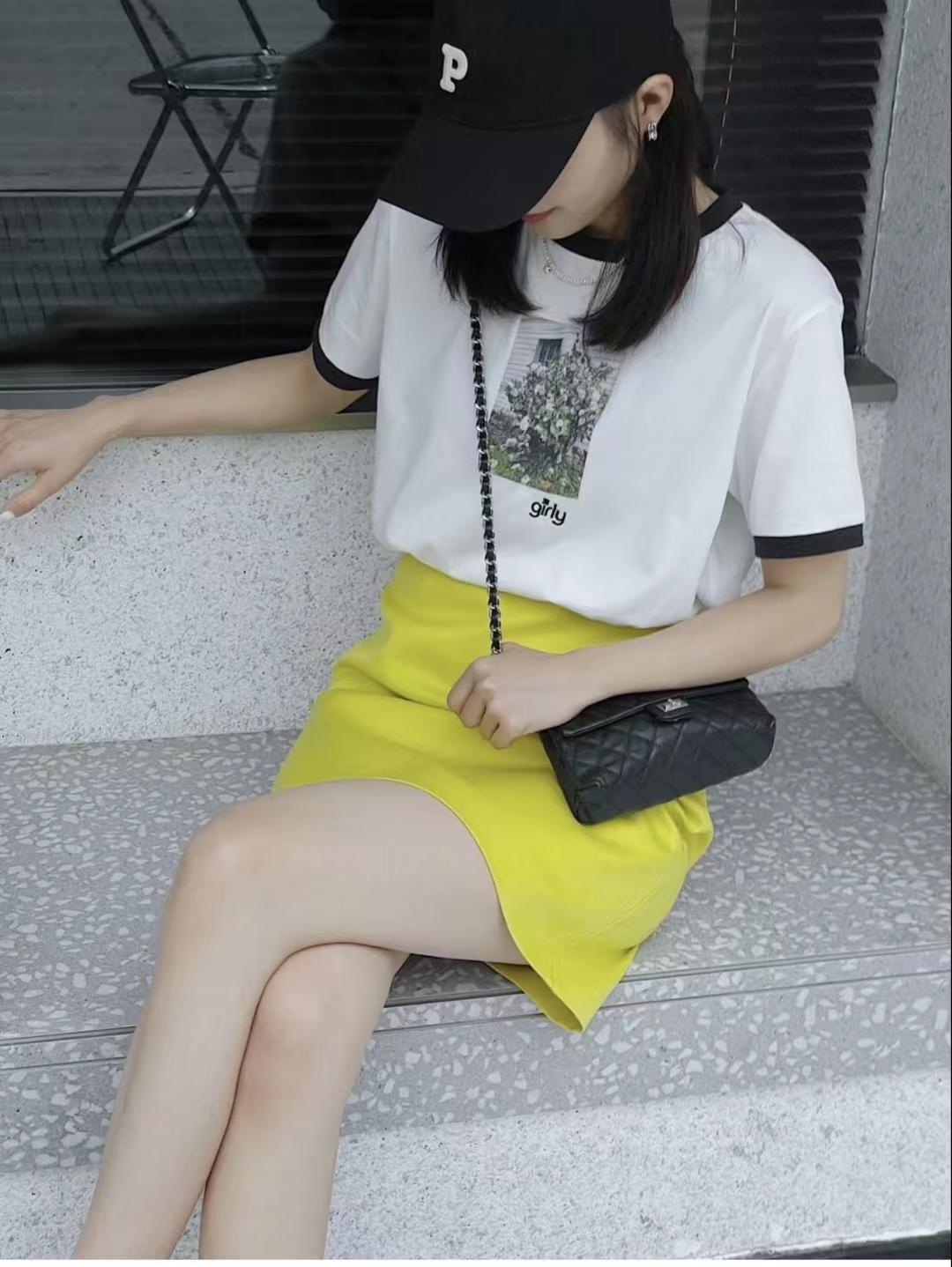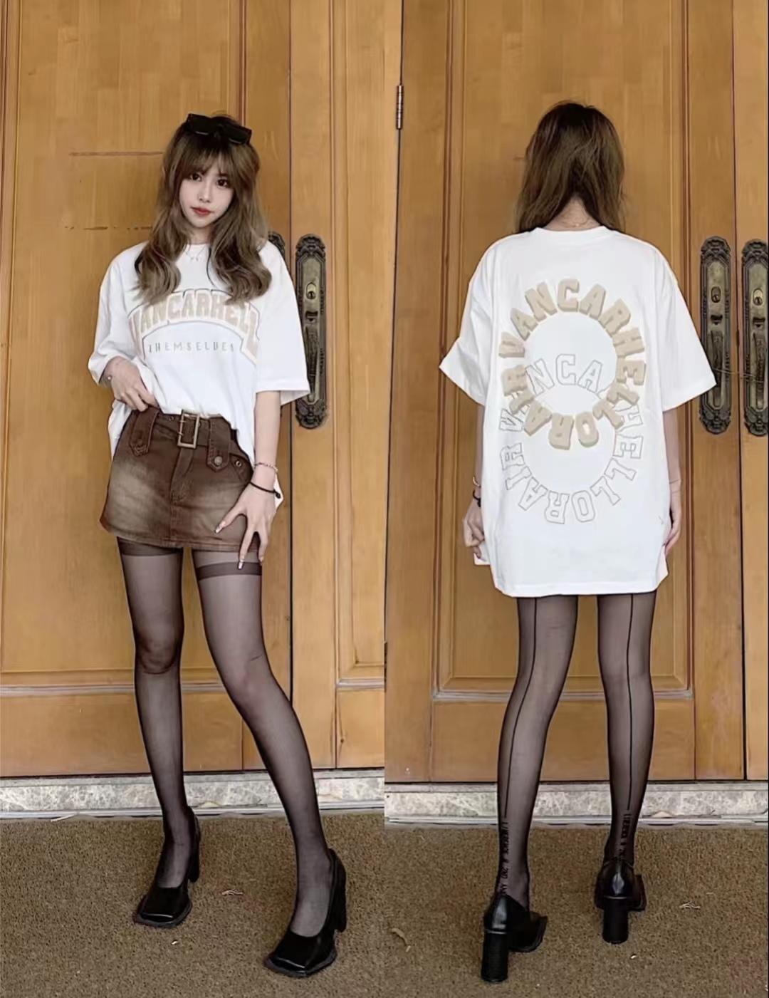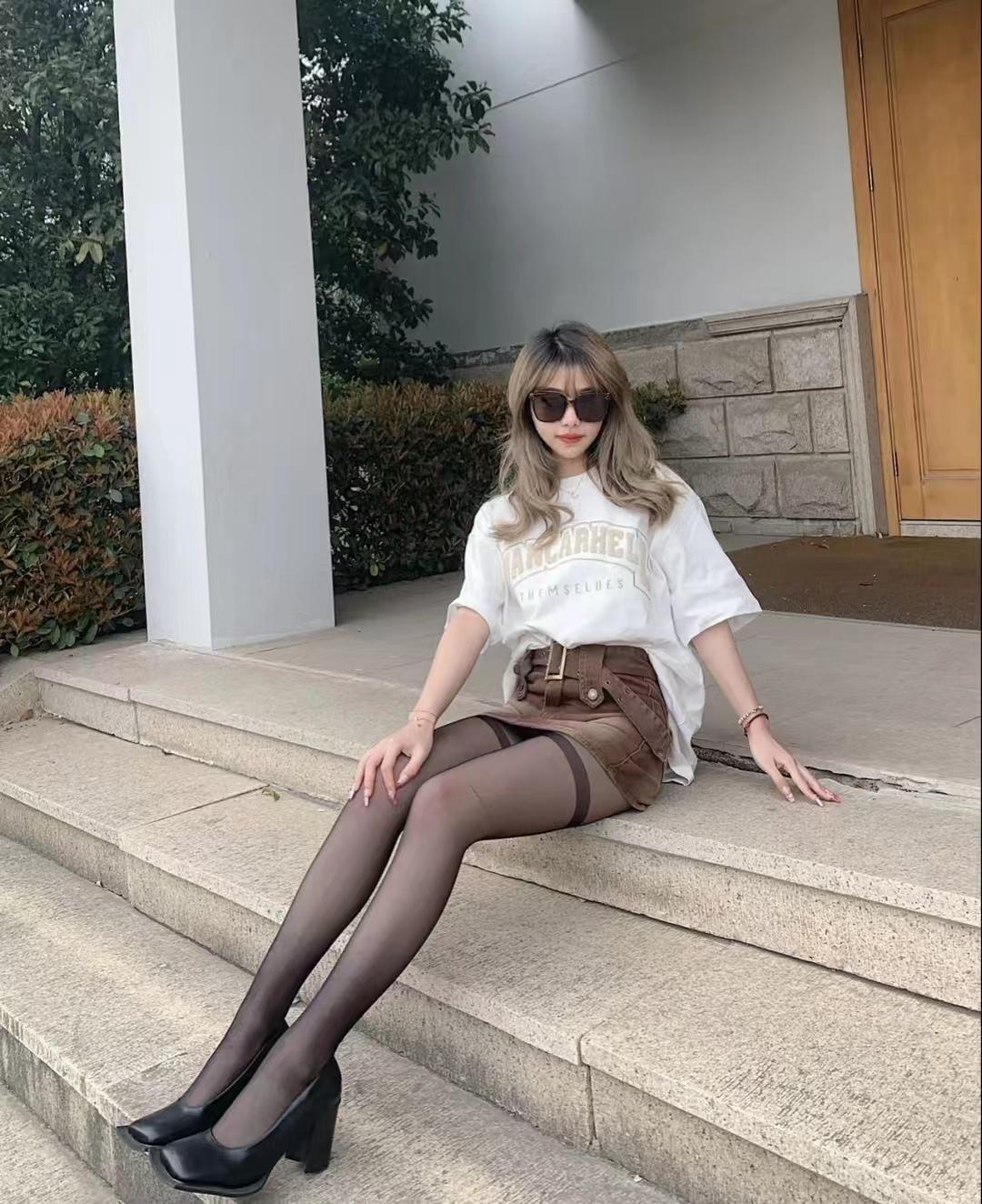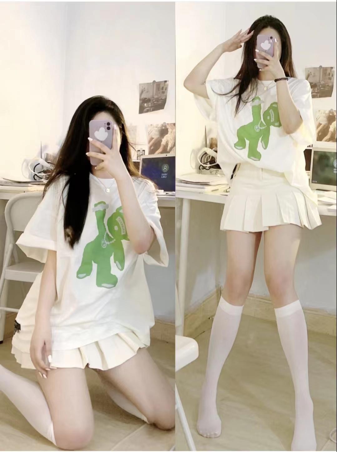 T-shirts and short skirts can also be worn to look like a hot girl: The brown hot girl skirt is really beautiful. This white T-shirt has patterns on the front and back. It is perfect to wear with sunglasses in summer. A hottie goes out on the street!
