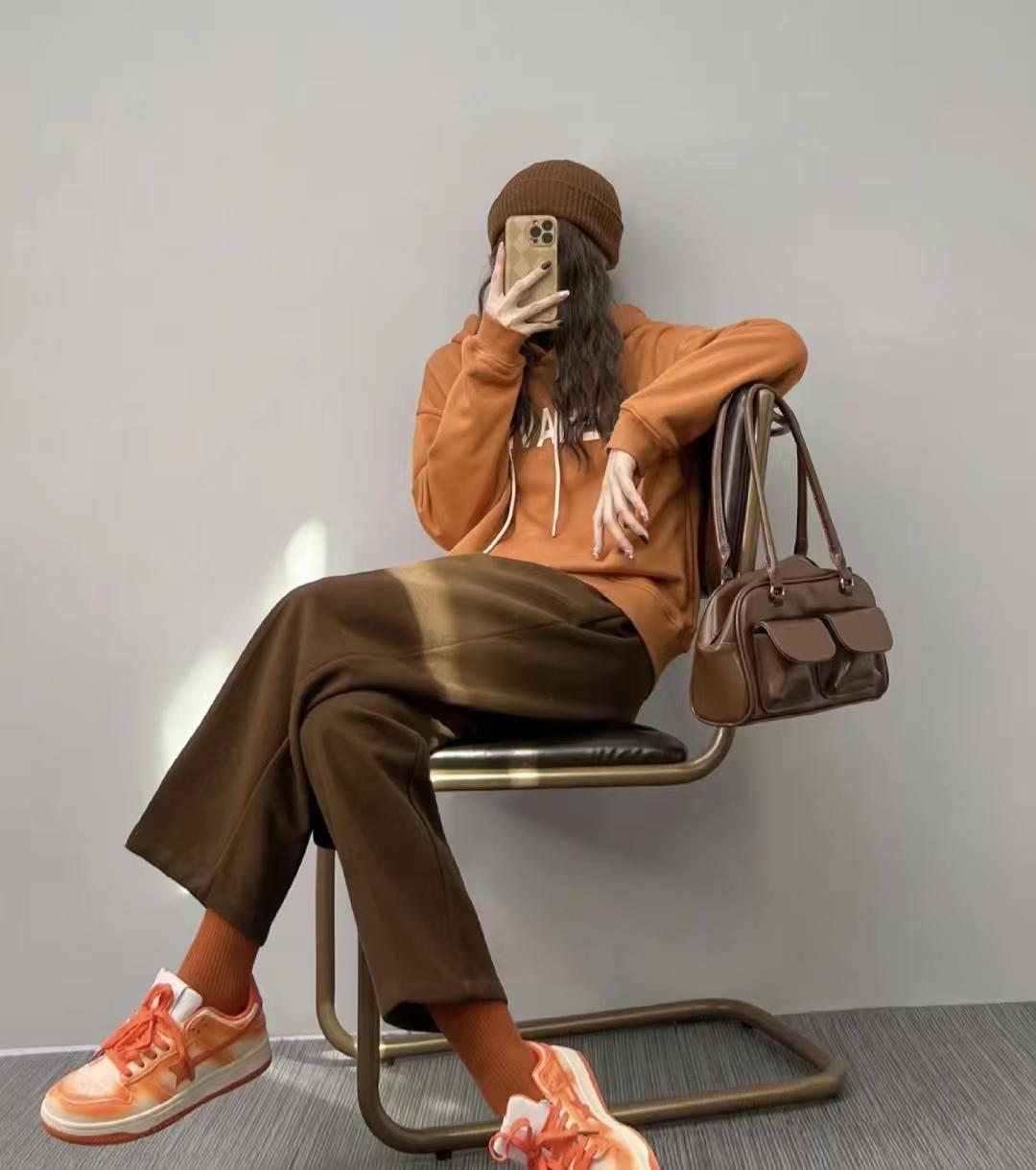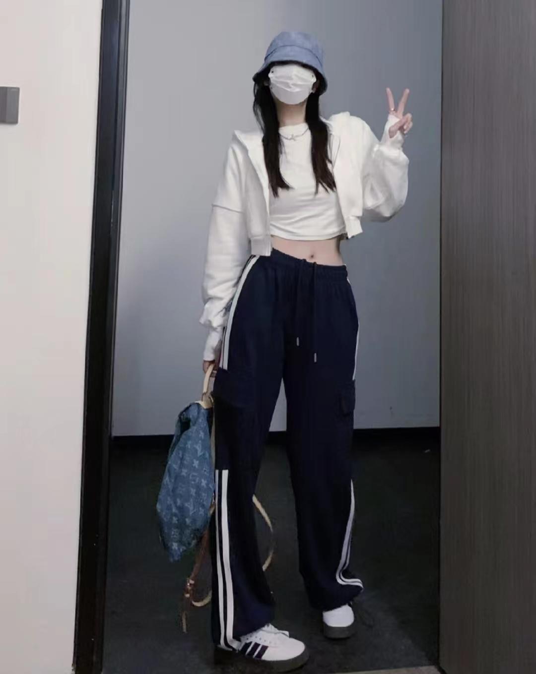 Fleece short sweatshirt, I really like the American retro bella sports style. A short sweatshirt + sweatpants, it looks a bit like a Bella-style hottie. The sweatshirt is plus fleece, so it’s no problem to wear it in early spring.