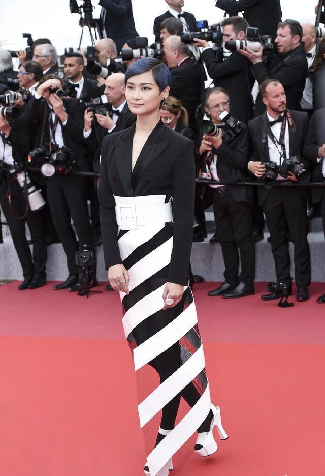 The most familiar style of stockings should be the semi-transparent stockings made of nylon fabric, right? This type of stockings itself has a see-through effect, which can vaguely reveal beautiful legs and exude a full sense of femininity. If combined with printed patterns, it will be even more alluring. Li Yuchun chose polka-dot stockings for this look, which focused all the public’s attention on the legs. Her beautiful legs are long and straight, which is really charming.