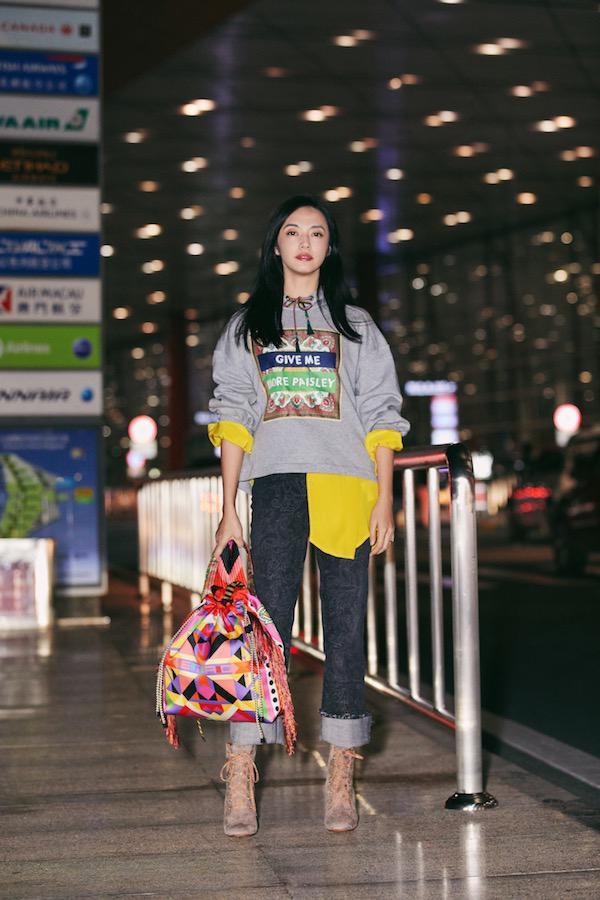 Versatile items are usually comfortable and skin-friendly, but they have the disadvantage of not being fashionable enough. Girls can add them through methods such as “layering” Fashion index. “Stacking” can not only add layering to the look, but also make it easier to cope with changes in temperature. Yao Chen’s look is an example. She layered a sweatshirt and a shirt. The gray and yellow were bright and dark. The collision effect of the colors was particularly eye-catching. Half of the clothes were exposed, making her look chic and casual.