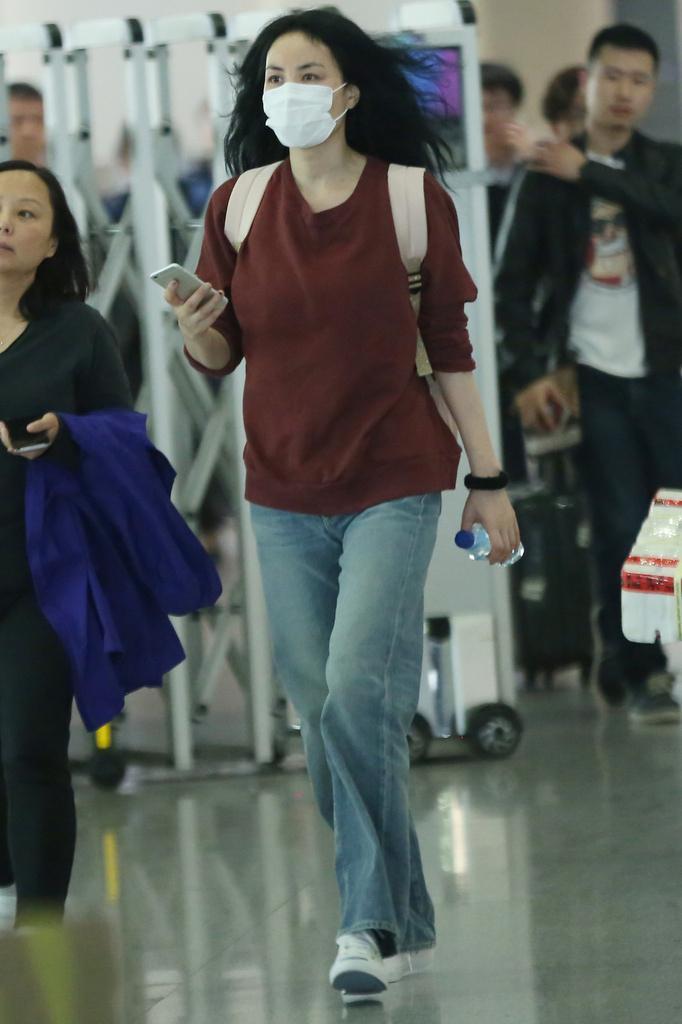 Faye Wong’s “bad T-shirt” is going to be popular. It looks high-end when worn casually with jeans. A bob haircut can help reduce age. Jeans are very wide and have a very significant effect on modifying the leg lines. However, the elasticity of denim fabric is average. If the fit is too slim, the tightness will be obvious, which will easily expose the shortcomings of the legs and affect the overall beauty. It is recommended that celebrities with thick legs try to avoid slim-fitting jeans. Straight-leg or wide-leg styles are more suitable for their body shape. For example, the jeans in Faye Wong’s outfit are straight-leg styles, which will make Faye Wong’s long legs look better. Straight and slender, it looks fashionable with a burgundy T-shirt.