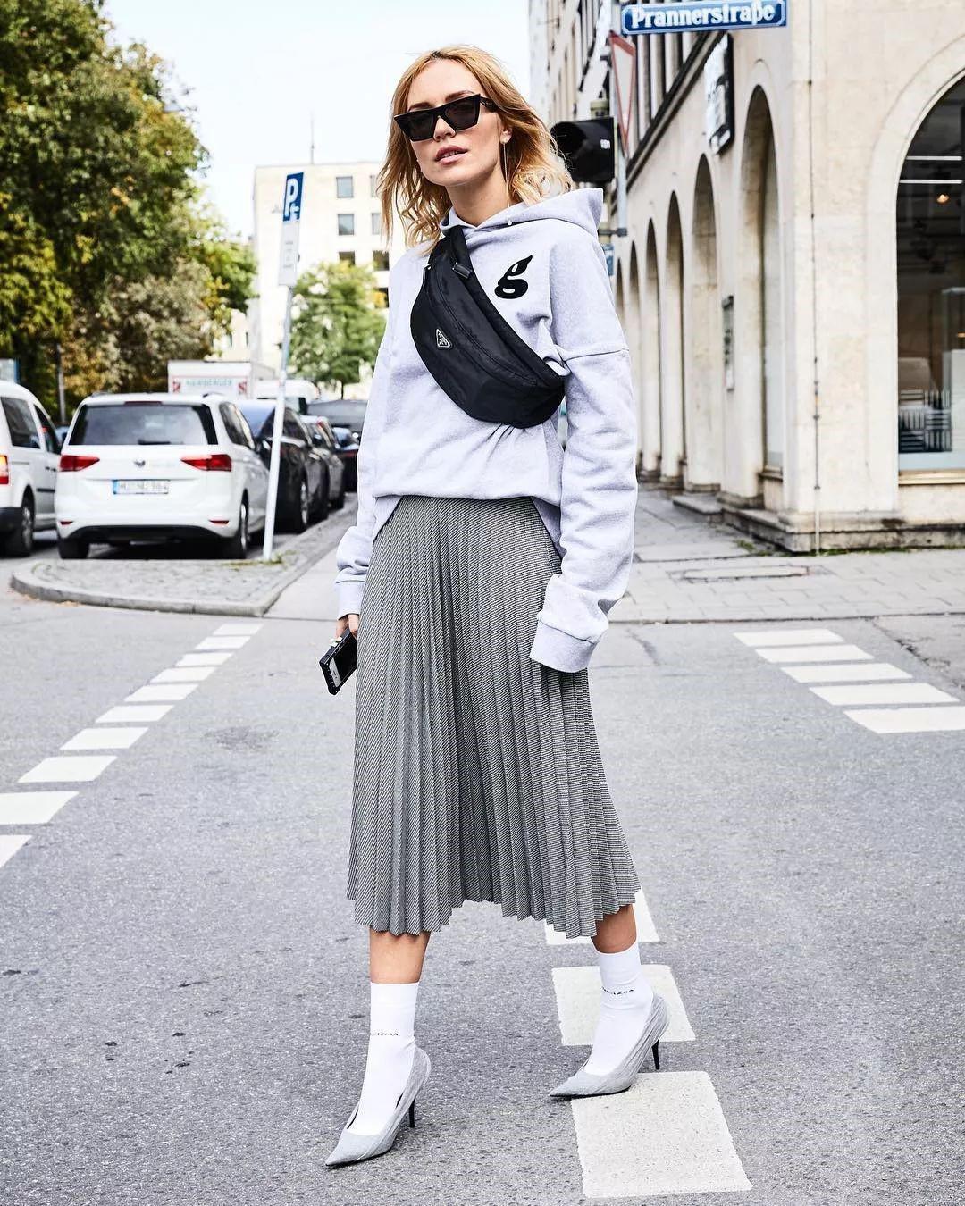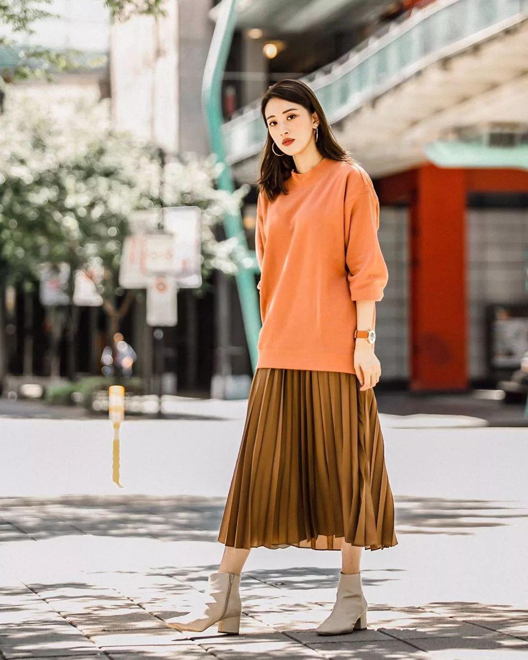Quiet pleated skirtIt reduces age, but is more suitable for young girls. The pleated long skirt pays more attention to the display of elegance and temperament, and there is no need to worry about the problem of exposure. The look when combined with a sweater can be rigid or soft, although it is very difficult to wear separate upper and lower garments. It’s easy to highlight the waistline, but you still have to pay attention to the details. If the sweater is too long and the fabric is thicker, it’s better to use a belt to create a high waistline. Otherwise, it’s easy to wear a pleated skirt like this to create a fifty-fifty figure. Unless you are tall and slender, this is not recommended.