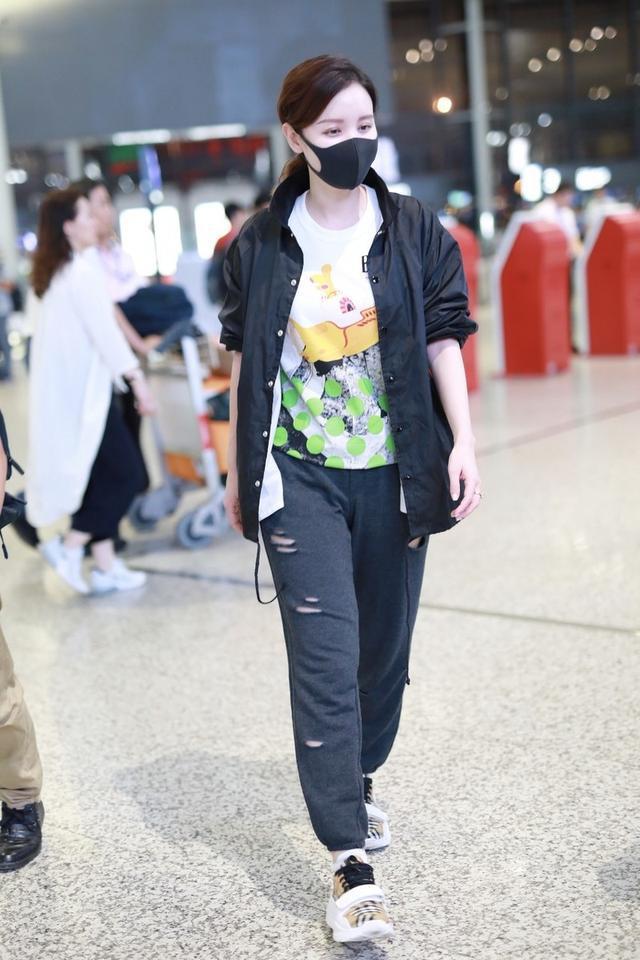 The utilization rate of bright color styles in T-shirts is not high. Colors that are too bright are very picky on skin color, and improper control can affect personal image. The overall effect is very unsatisfactory. For people who dress conservatively and low-key, it is too flamboyant. It will inevitably lead to the embarrassment of a concave shape. However, for celebrities, bright colors can improve the recognition of the style and win them a lot of attention. Higher exposure. Zhang Meng wore a red T-shirt when she walked to the airport this time. The enthusiastic color made her look lively and smart, and even her skin tone became whiter.