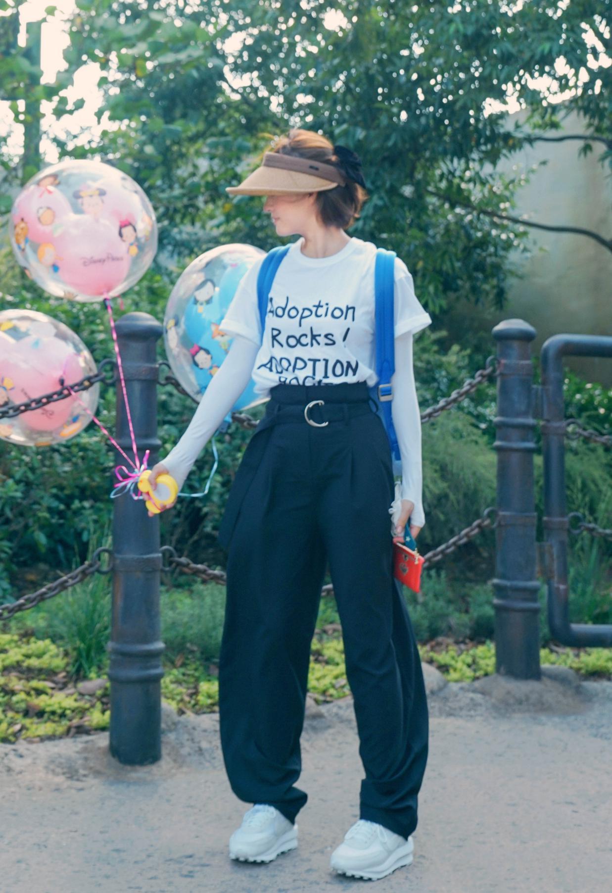 Early trousers had a strong professional style, with a slim fit and a sense of restraint. No matter how they were paired with suits and shirts, they looked restrained and dull, and they rarely appeared in other products. Occasions, with the development of fashion, the design of trousers has also been greatly improved, gradually weakening the sense of professionalism and becoming more casual and comfortable. The tops that can be matched are no longer singular, and the styles have become more diverse. Sun Li is very I like black trousers as a single item. This time I paired them with a printed white T-shirt to look refreshing and age-reducing. I am 165cm tall and can wear it to make my legs look longer.