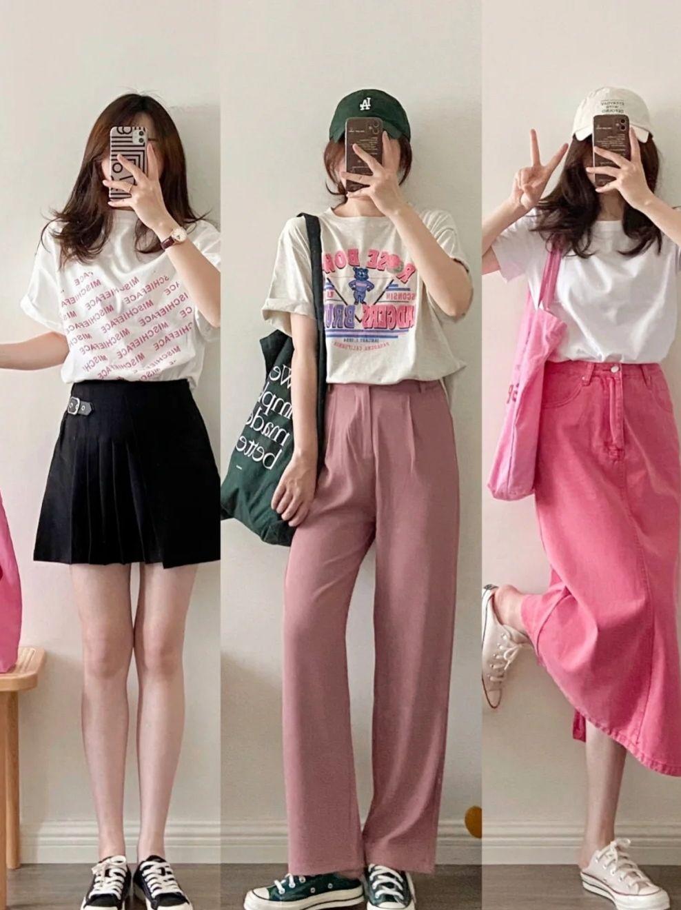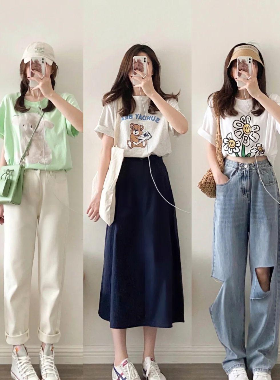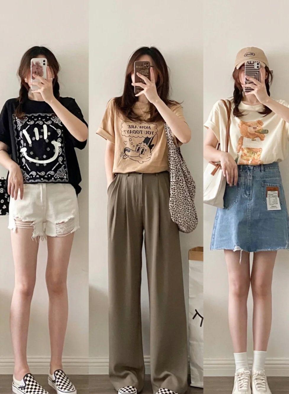 T-shirts can be divided into two types: solid color and printed. You can choose according to your own preferences. If you like minimalist style, wear solid color, which is simple and not fussy. People are intellectual and attractive, and can be used for multiple wears. T-shirts with superimposed printing or various interesting graffiti patterns can present a more colorful style effect, allowing you to show a unique beauty and create a girly feeling full of vitality.
