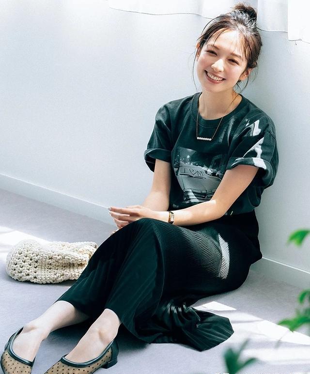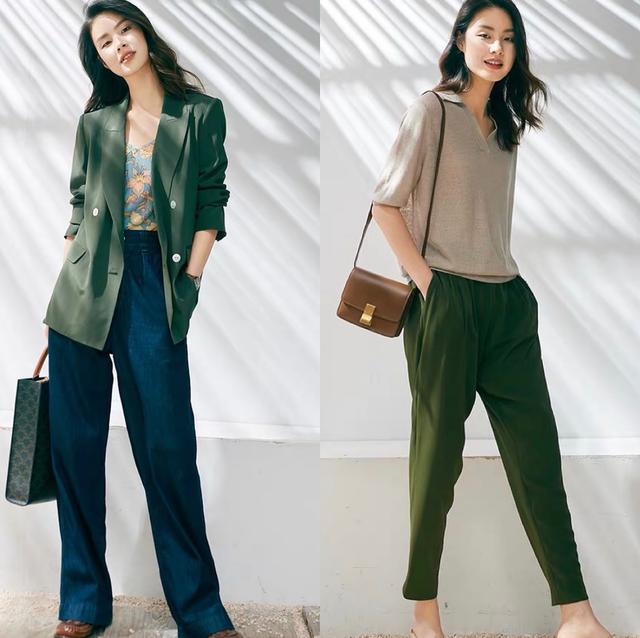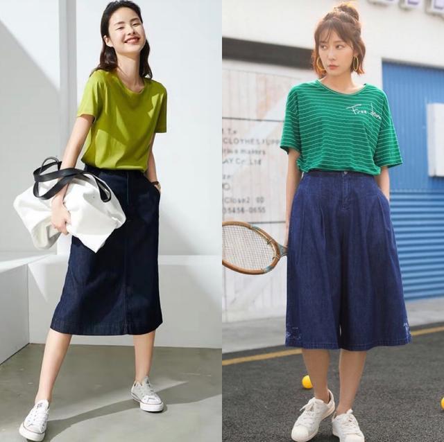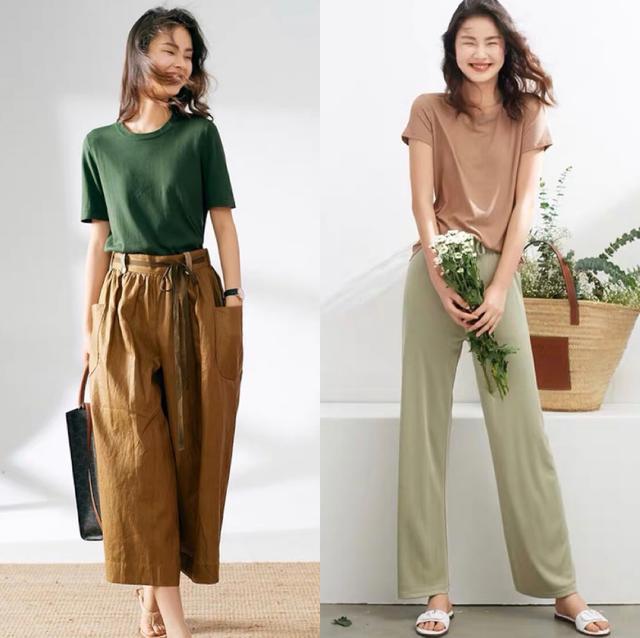 If you choose a dark-colored T-shirt top, you must consider your skin color and avoid dull and dull black. Instead, choose dark green, haze blue, camel, etc. that can complement your skin tone. The key is that in summer, these The colorful T-shirts look comfortable and are very popular among fashionable people. For example, pairing a dark green top with caramel-colored wide-leg pants creates a very handsome, eye-catching and stylish look, helping you achieve fashionable chic easily!