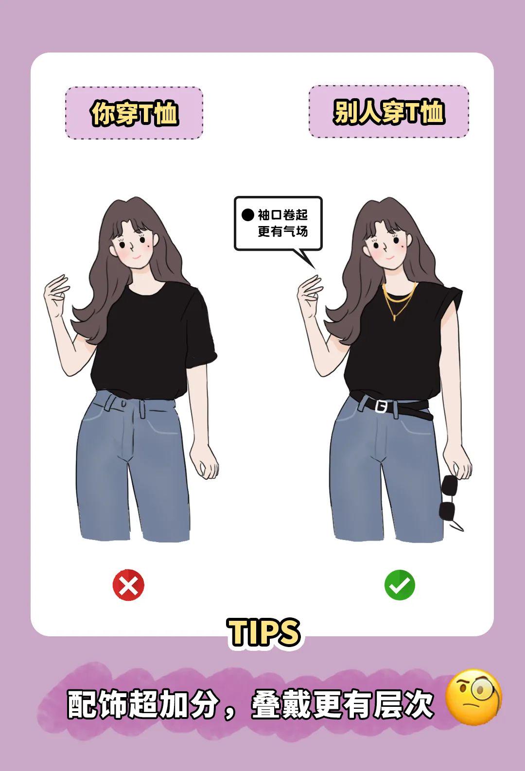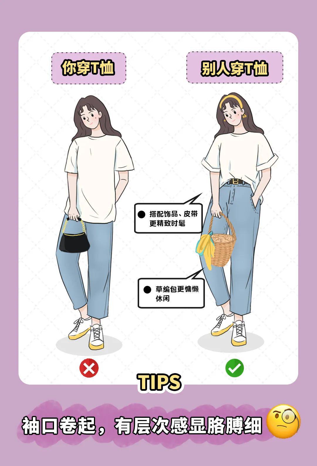 At this time, basic T-shirts that are loose and cover the flesh and are versatile and not picky will naturally become the biggest winner in the fashion industry! Walking on the streets, men, women and children are wearing them! But here comes the problem! Loose and basic T-shirts should not be worn casually. If you don’t match them well with other items or don’t wear them correctly, they will tell you in a minute what it means to have the same person but different destiny!