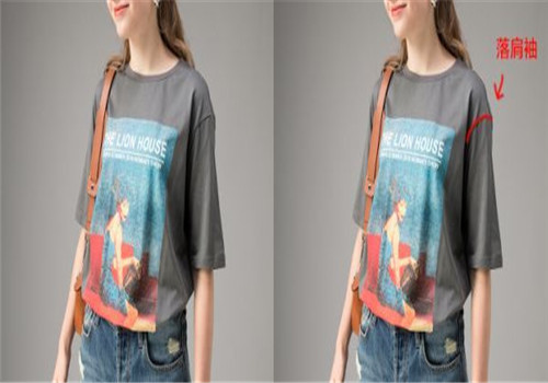 The shoulder line of the dropped shoulder style clothes falls below the upper shoulder, and the body invades the sleeves, which is the dropped shoulder sleeves. The shoulder line of the normal model is exactly on your shoulder, which is the standard shoulder line. The body is the body and the sleeves are the sleeves. The division is very clear. The dropped shoulder style has the function of modifying the shoulder line and can show the natural curve of the person.