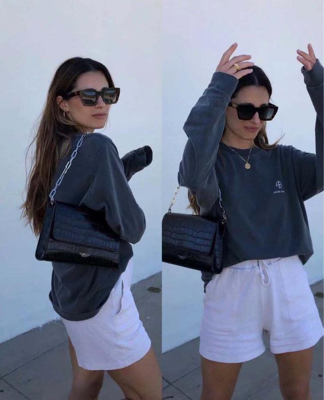 Slightly longer shorts paired with a sweater are very elegant. There are no unnecessary colors and are super versatile. With some bags and sunglasses, the temperament is not only more elegant. There is charm.