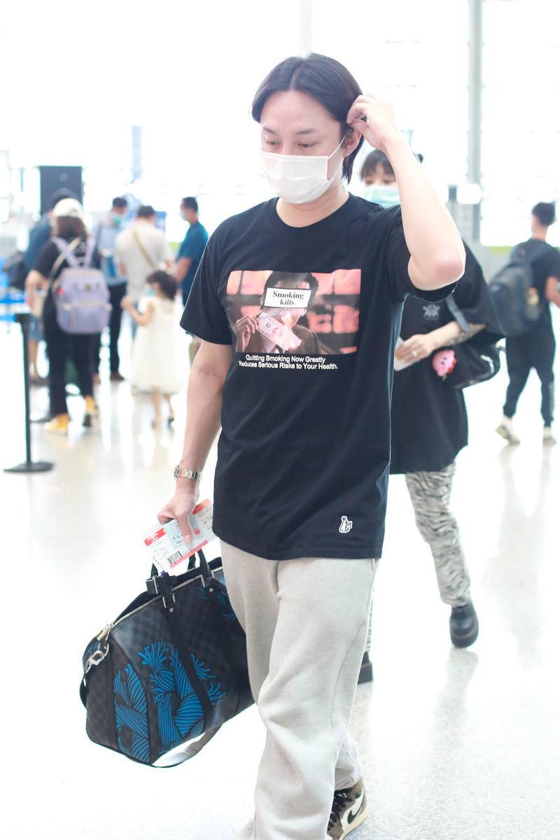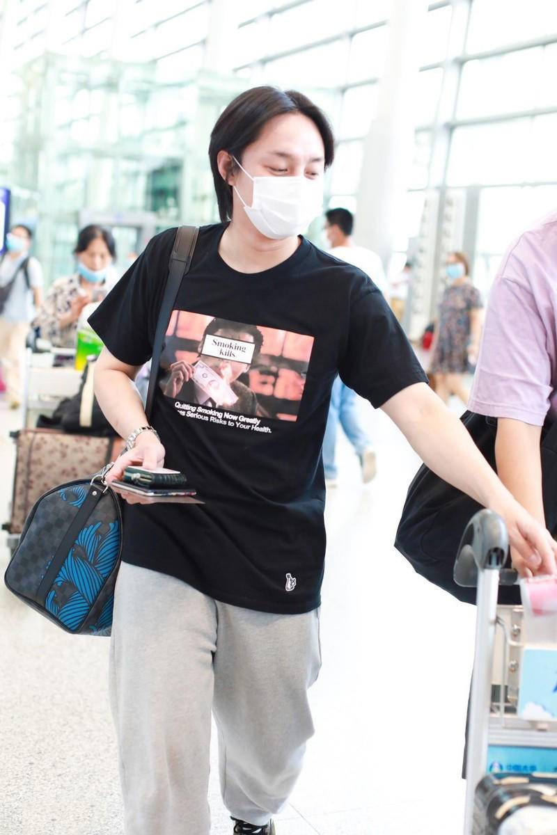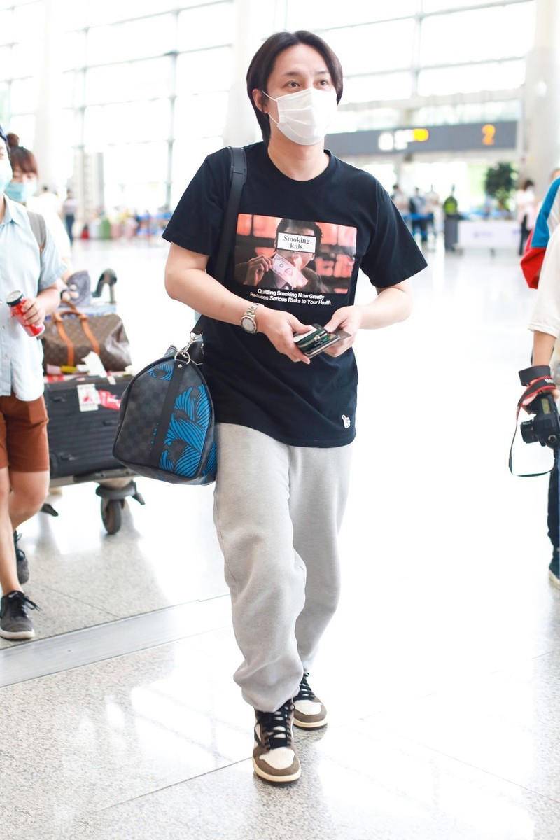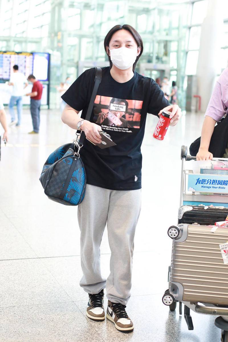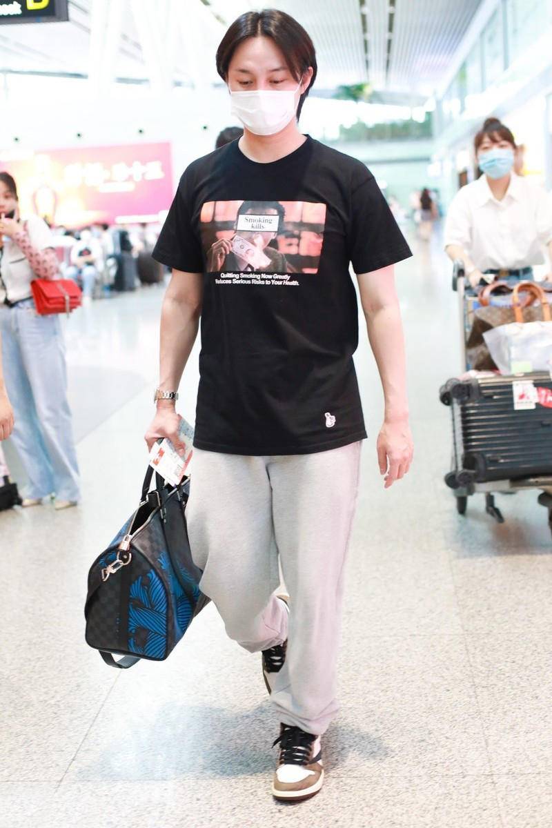Why is Yin Zheng a boy who pays attention to details? Although he was wearing a simple outfit, he carefully selected a printed T-shirt, which made the whole outfit look less rigid and more fashionable. Such an airport look can be said to be impeccable.