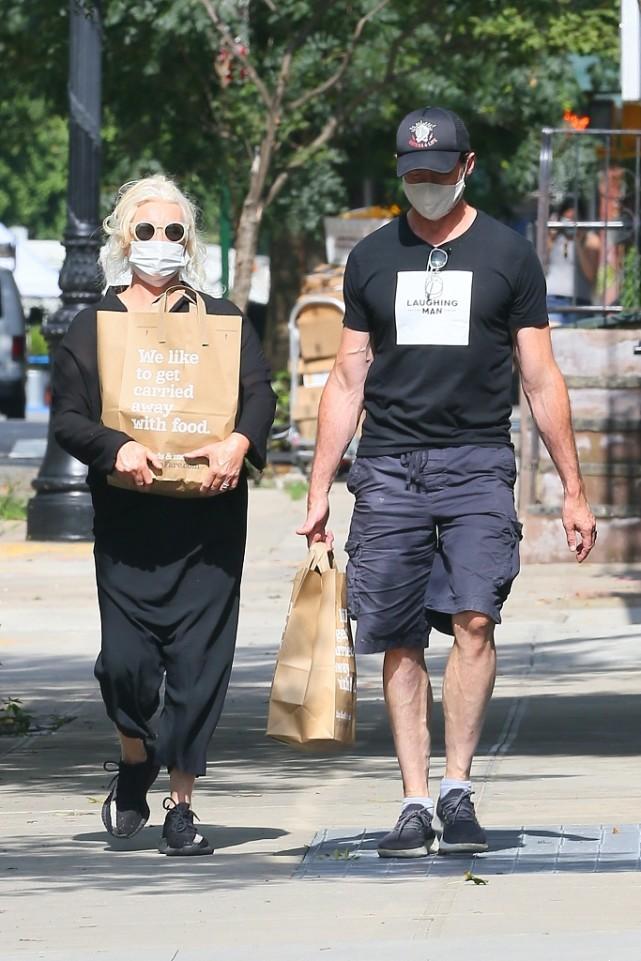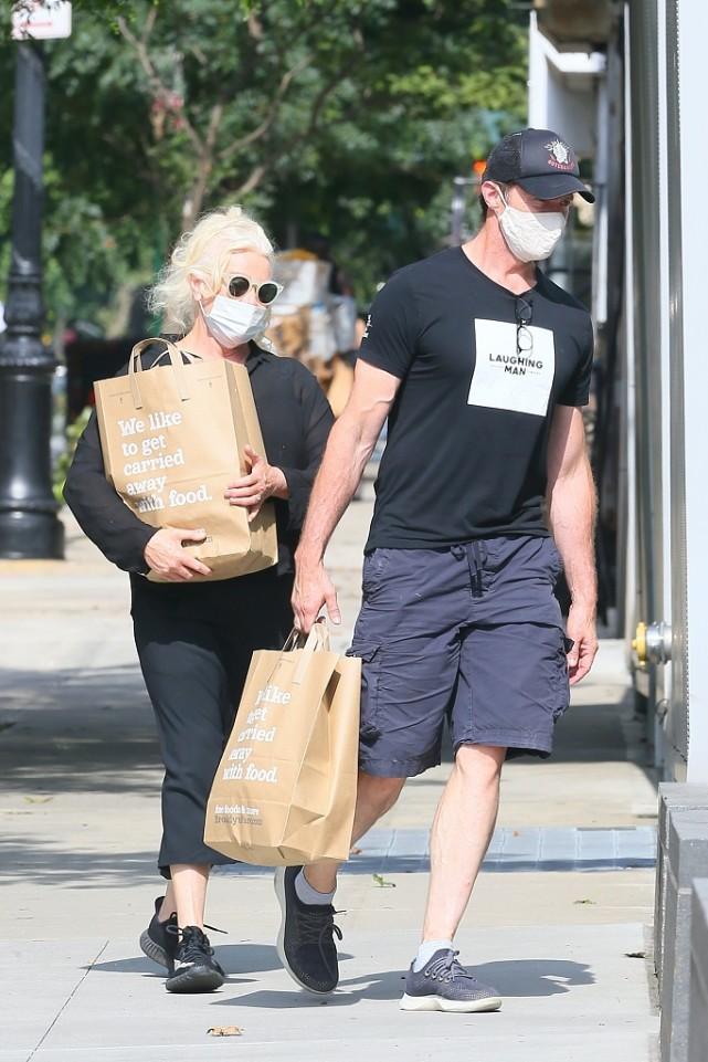 The couple also often go out together. They walk on the street one behind the other, and the scene is very loving when one person is holding a dog. Hugh Jackman, who is wearing gray long-sleeved shirts, is still handsome and tall, and the long-sleeved fabrics are very slim. Gray long sleeves are paired with black sports casual pants. The proportions of the body look good, and a pair of black sneakers are casual and comfortable.