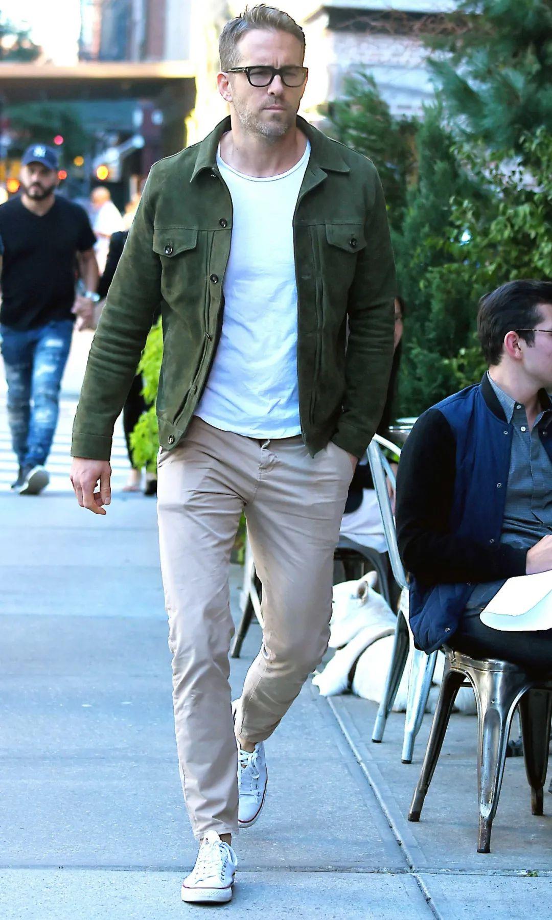It is also very neat to pair a trucker jacket with a white T-shirt. Add a pair of classic khaki pants and youthful and age-reducing canvas shoes, and the look is very versatile. If you find military green difficult to control, you can also change it to denim blue or black, which will make the look easier to control.