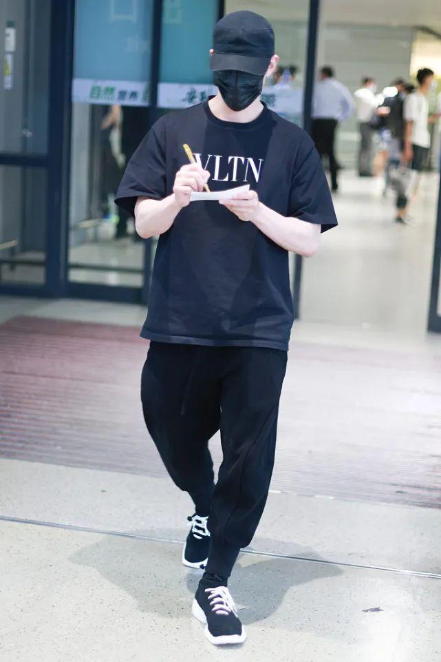 A letter-printed T-shirt paired with ankle-length sweatpants. The styling is very versatile, and the main color is black, so Li Zhiting’s combination this time is relatively low-key and versatile, but the effect is still very attractive.
