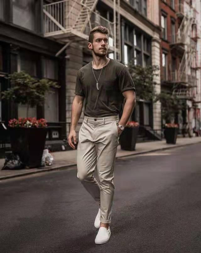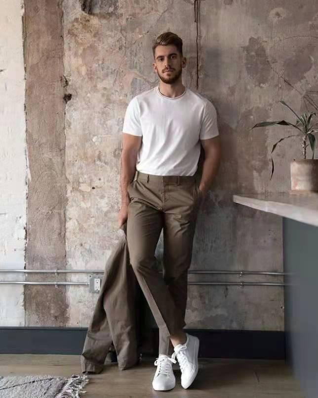 Combining a casual and simple T-shirt with elegant and elegant suit pants is undoubtedly a high-quality combination that can greatly increase the fashion and high-end sense. For men The matching does not need to be complicated. Two simple items can easily make you fashionable and not boring, greatly increasing your style and charm!