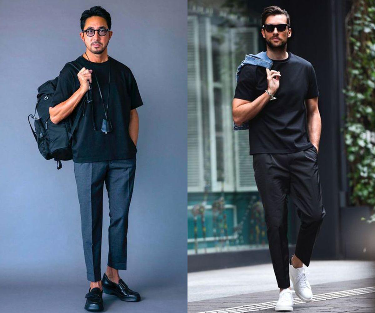 A pure black T-shirt is not uncommon in summer wear, and is even a must. As accessories, a plain T-shirt has a high-end feel, but it also manages the overall style well. Paired with a pair of trousers, it looks very manly.