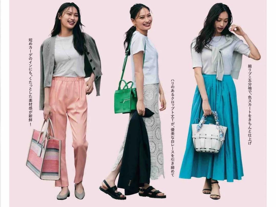 White T-shirts in summer can not only be worn alone, but can also be used as an inner layer. A white T-shirt is worn as an inner layer, refreshing and highlighting the sense of hierarchy. A refreshing white T-shirt paired with a dark knitted cardigan gives people a gentle and elegant look.