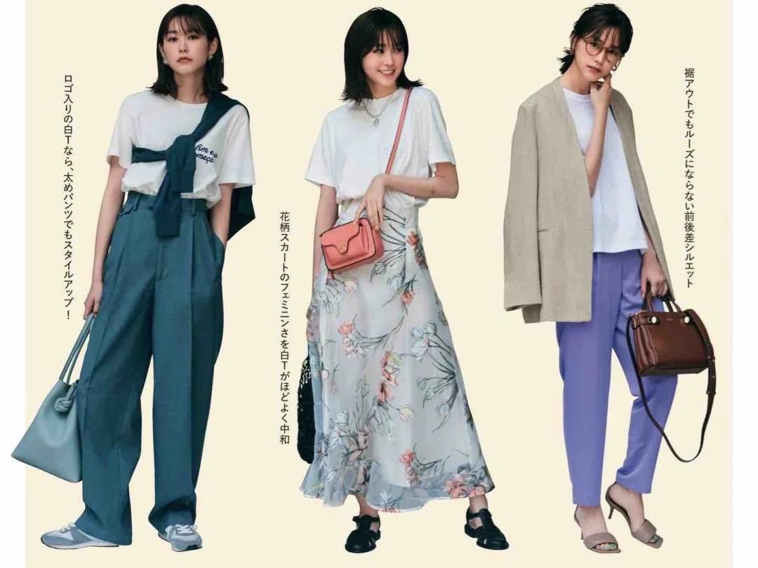 White T-shirt, the most conventional The way to match it is to pair it with a skirt or high-waisted pants. Of course, skirts should also be paired with high-waist styles as much as possible, so as to outline a more slender legs.