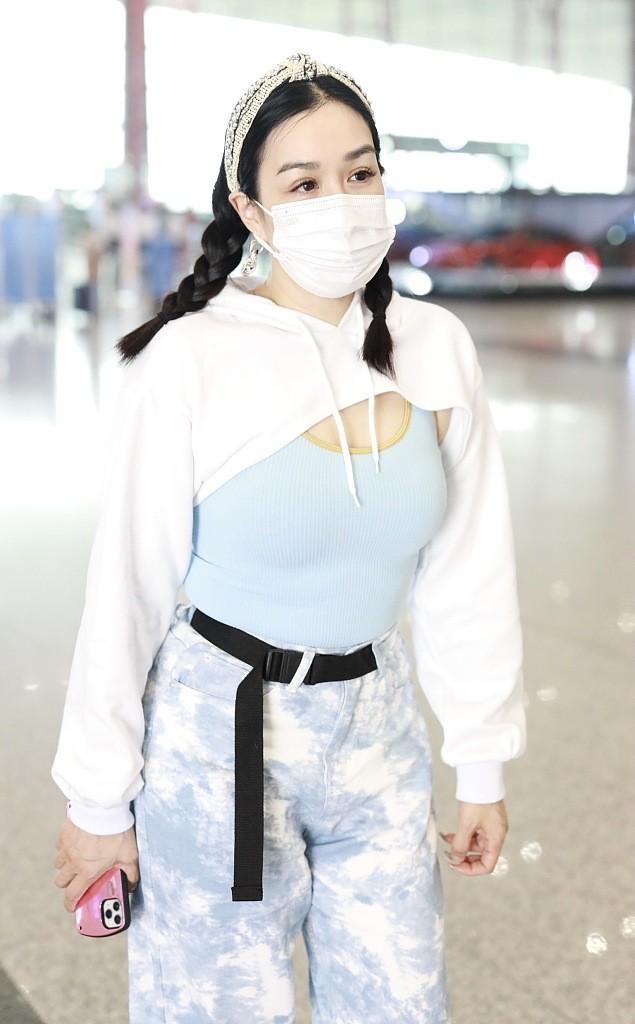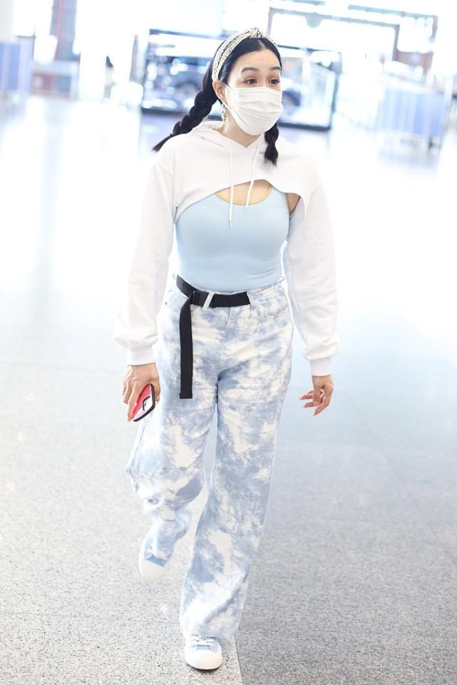 Chung Liti wears a knitted vest with a “one-point sweatshirt”, her plump figure cannot be hidden, and her braids look so tender. Chung Liti only cares about looking young. She wears a tight-fitting vest but shows off her round belly. It looks very chic with a sweater.