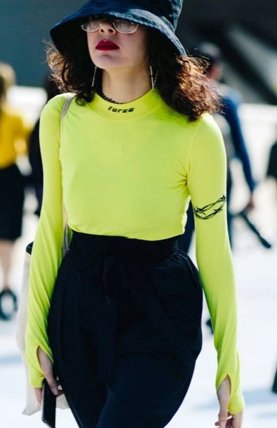 For little fairies who pursue individuality, fluorescent long-sleeved T-shirts look more energetic than common colors like white and black. In the increasingly cold weather, many people tend to wear conservative colors. At this time, fluorescent yellow will save you, and the ordinary style will become the brightest scene on the street. This sporty long-sleeved T-shirt is very popular right now. The fluorescent yellow injects vitality into the ordinary-looking T-shirt, and the sporty style is both comfortable and individual. Of course, this style is suitable for sisters who are thinner.