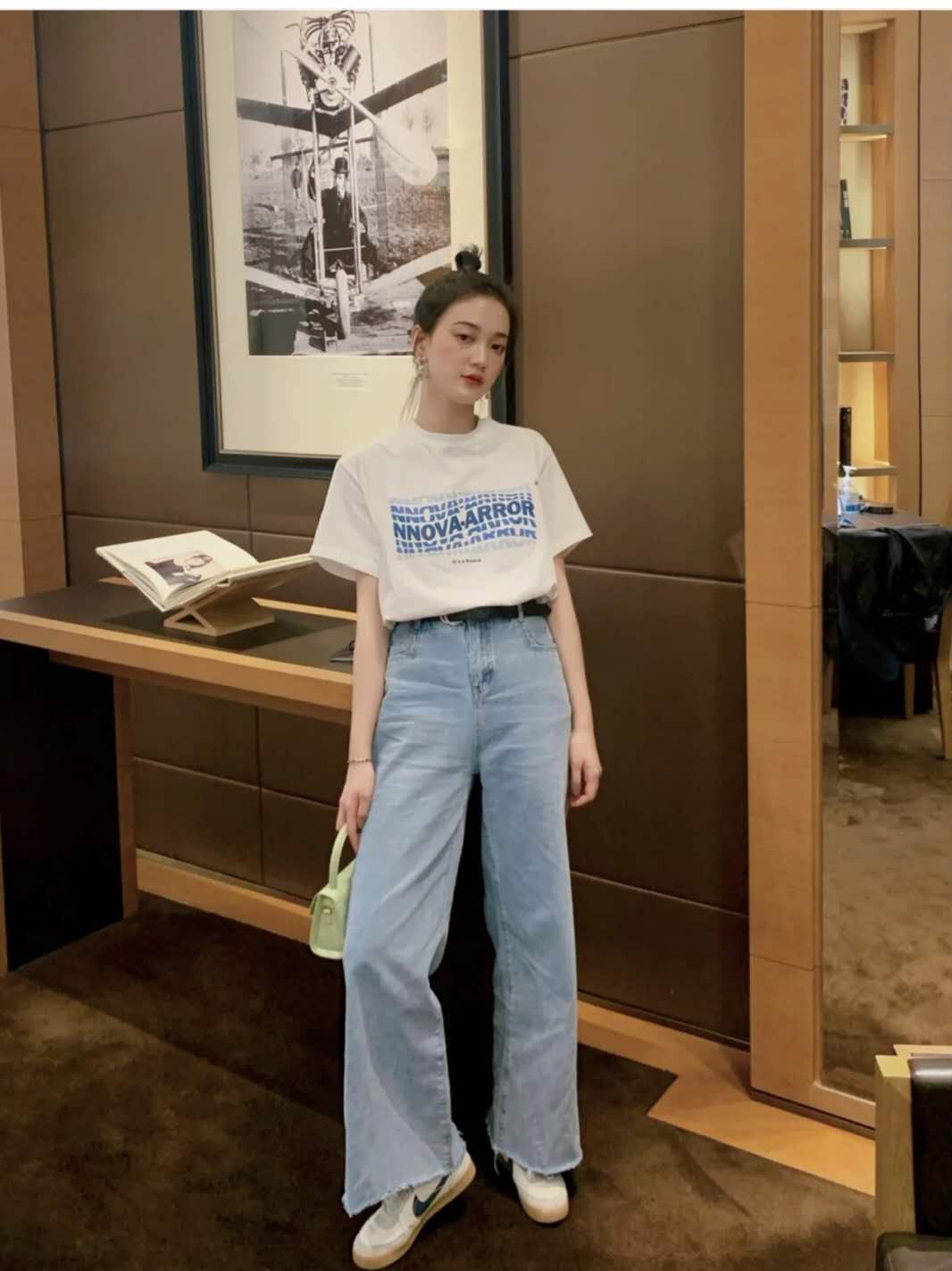 Summer You must have a white T-shirt with letters. Wear it directly or with shorts, trousers and skirts. Blazers and denim jackets are very fashionable. Pair them with high-waisted floor-length suit trousers. This trouser belt is designed to be worn even with a small waist, and the overall look is very impressive. high.