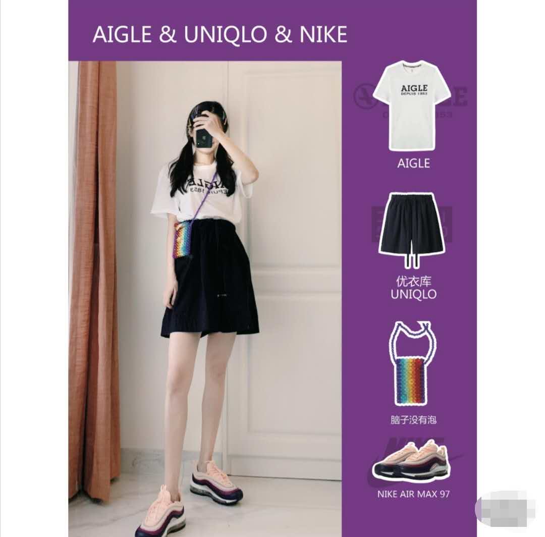 Very low-key A white T-shirt with letters on the back. Paired with a pair of military green overalls, it looks very cool and casual. It also has a cool black backpack on the back. It can be worn for daily shopping or going to school.