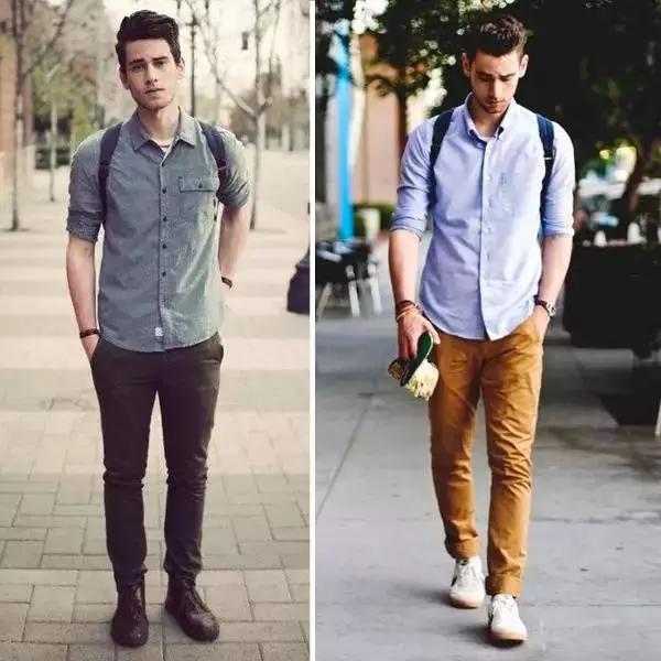 Plain T-shirt outside Shirt, multi-layered. However, this way of wearing is only suitable for younger boys.