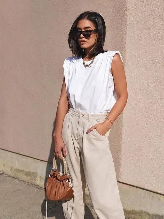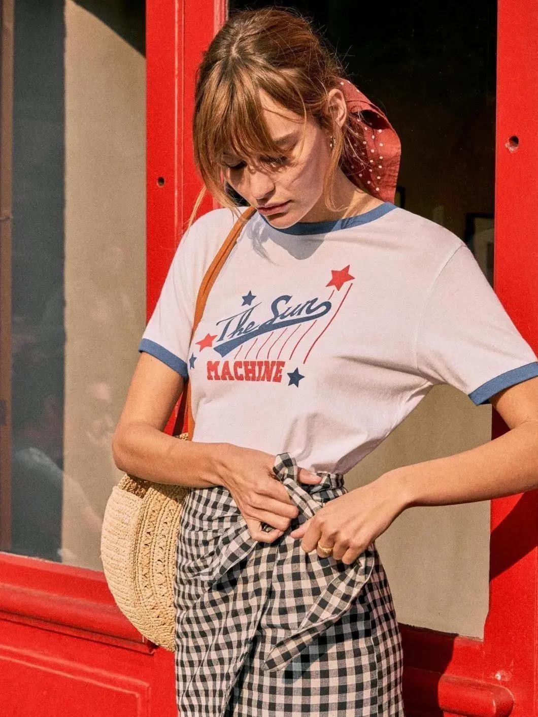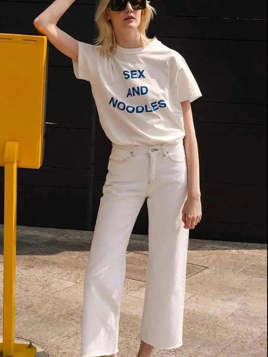 When it comes to daily dating, the key word for it is relaxation. A simple lettered T-shirt paired with straight jeans is a relatively neutral style, but at the same time there is a hint of French retro in it. And it also has skills. The off-white color of the upper body and the bright white of the lower body not only have a transition of colors, but also have the fashion of the same color.