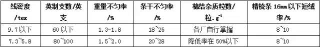 Combed cotton yarn is used to spin high-end products, so the quality requirements for combed slivers are extremely high. Due to the different spinning varieties, raw cotton conditions and production conditions of each factory, the quality index control range of combed sliver is also different. The general control range is shown in Table 1.