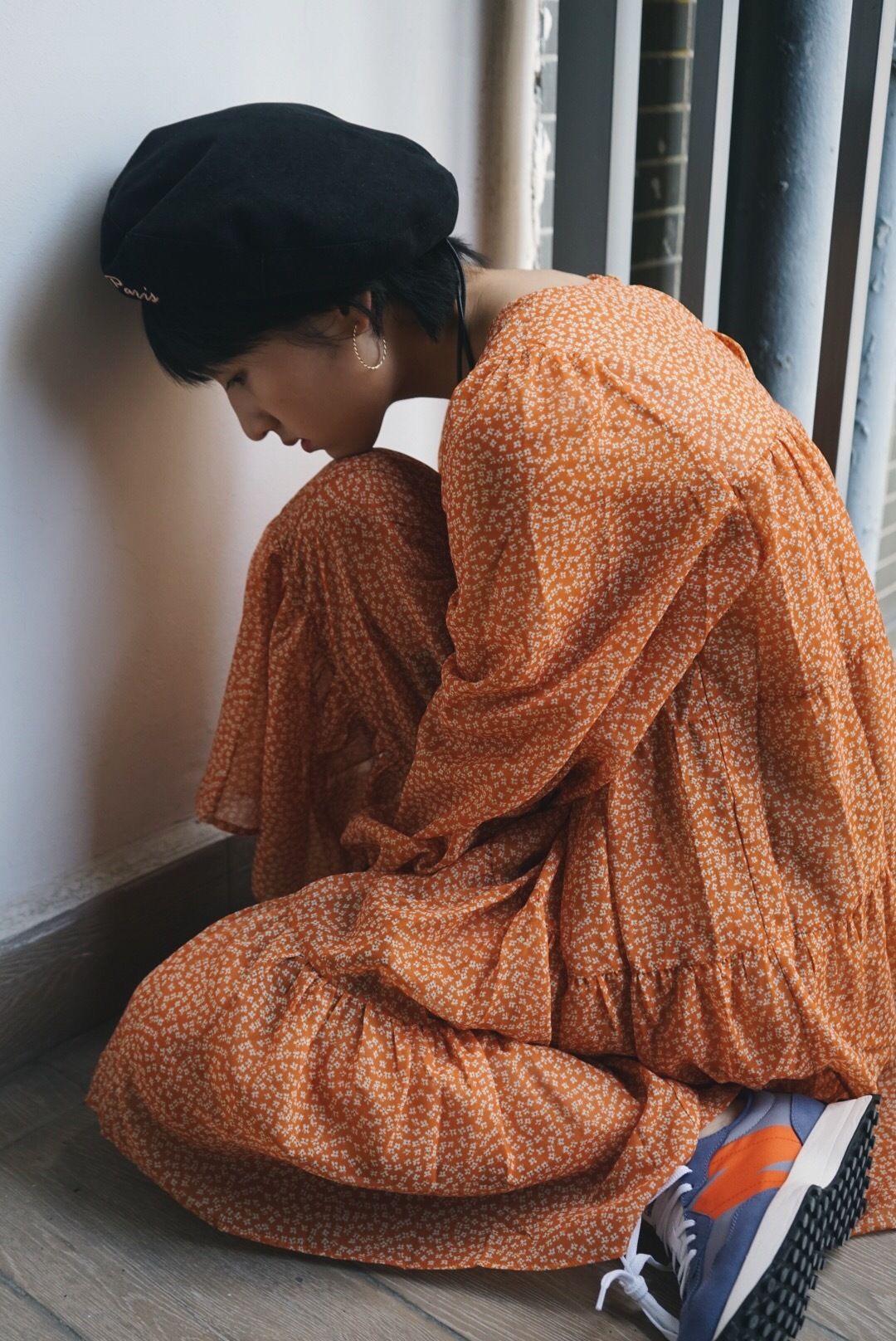 在这样一条直筒的裙子中,我们也能发现少女的轻熟风范,直筒裙摆无论任何身材的女生穿上都不会显胖,反而会因此而给人以娇小的感觉,焦糖色在秋日是最具温暖氛围的色彩,加入白色小碎花之后还能保持它清新干净的气息。