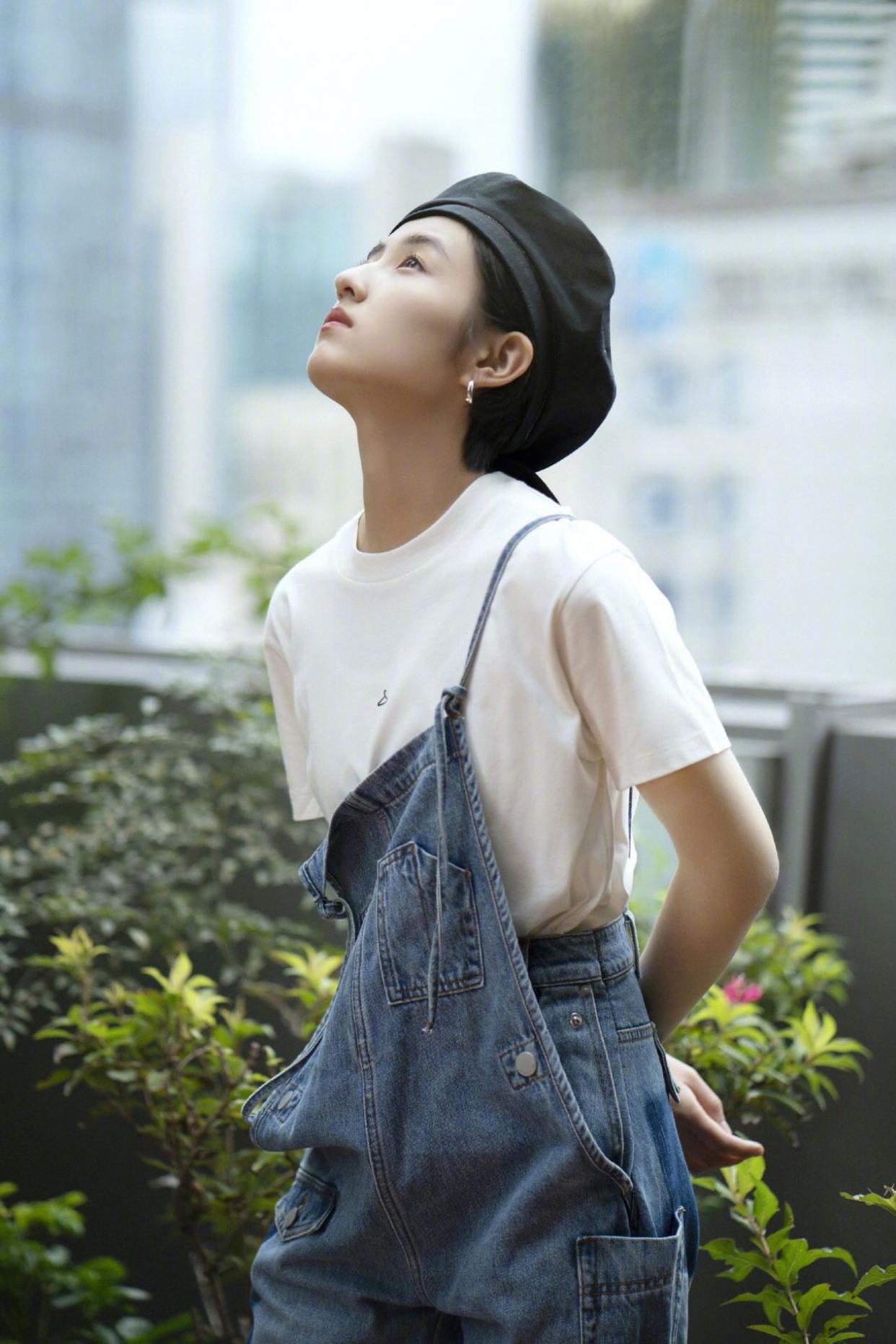 为了凸显出自己的大气美,张子枫将头发全部梳上去,这时就需要贝雷帽来彰显出她高颅顶的优势,宽大又立体的帽檐还能将五官衬托得更加小巧,牛仔裤的版型并不简单,吊带与裤身的双重叠加让原本日常的牛仔变得更加时尚。
