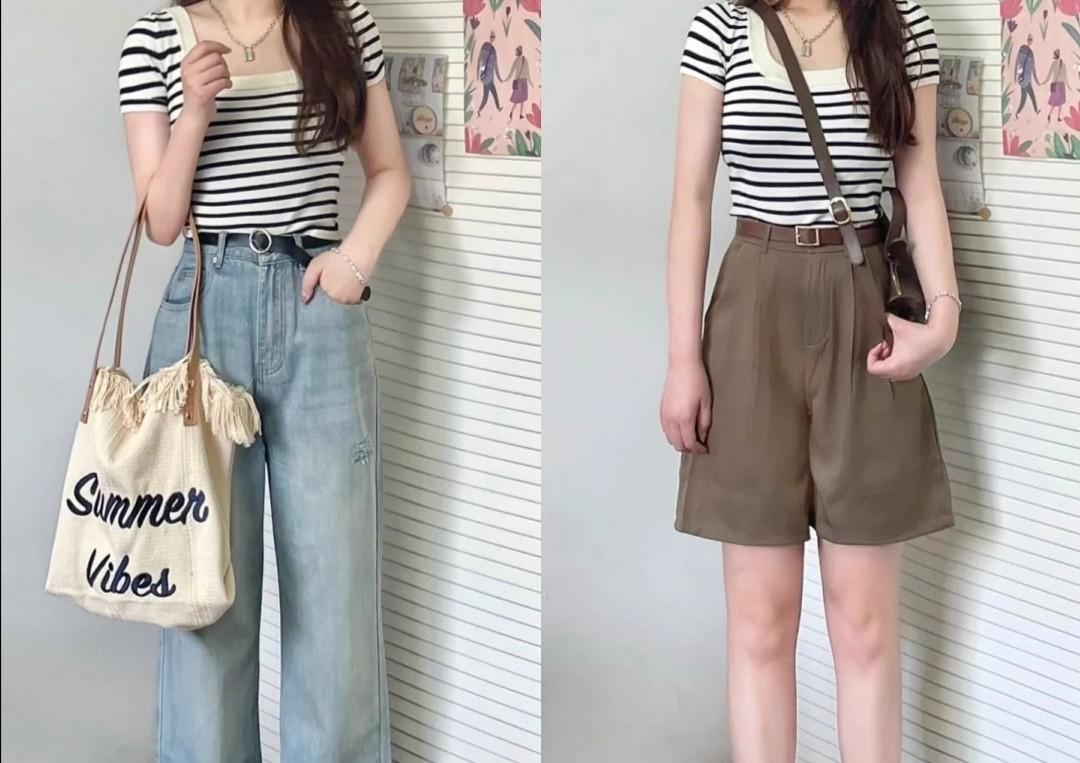You can choose a variety of items to add to your body in summer. Striped T-shirts have the effect of reducing age. , has full personality and charm, but does not look too flashy. Especially the black and white striped T-shirts make it more elegant to wear.