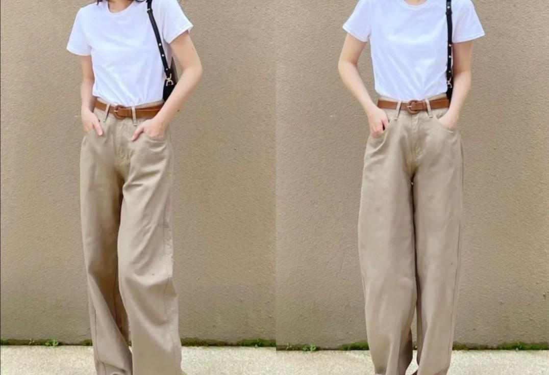 Women who are not satisfied with their skin color and think that wearing colorful clothes will make them look darker, you can focus on choosing colorful trousers, especially looser colored wide-leg trousers paired with T-shirts, which will look better. Increased comfort.