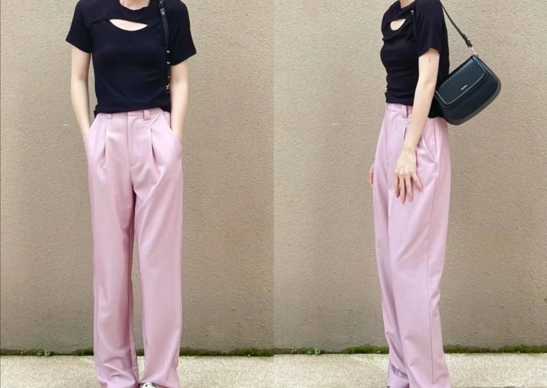Pink pants can be used to create a casual look. Although the color can release a sweet atmosphere, the structure of the pants is neutral. Full of flavor, breaking the sweetness. Pair it with a black slim-fitting T-shirt to show off your good figure.