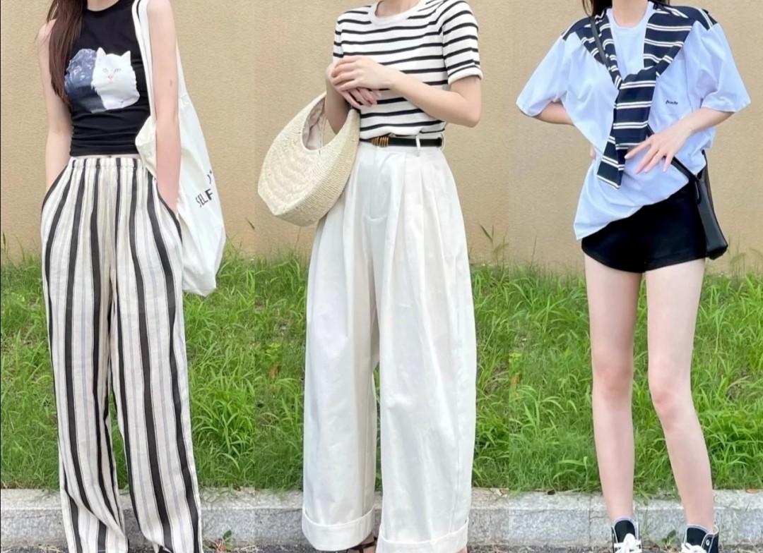 T恤的颜色不需要特别的单调,可以利用双色衔接的横条纹T恤,融入确切的减龄效果,后续搭配颜色基础的白色阔腿长裤,也会让造型更加清新,且没有对年龄的束缚,不仅年轻人可以驾驭,中老年女士也同样可以采用。