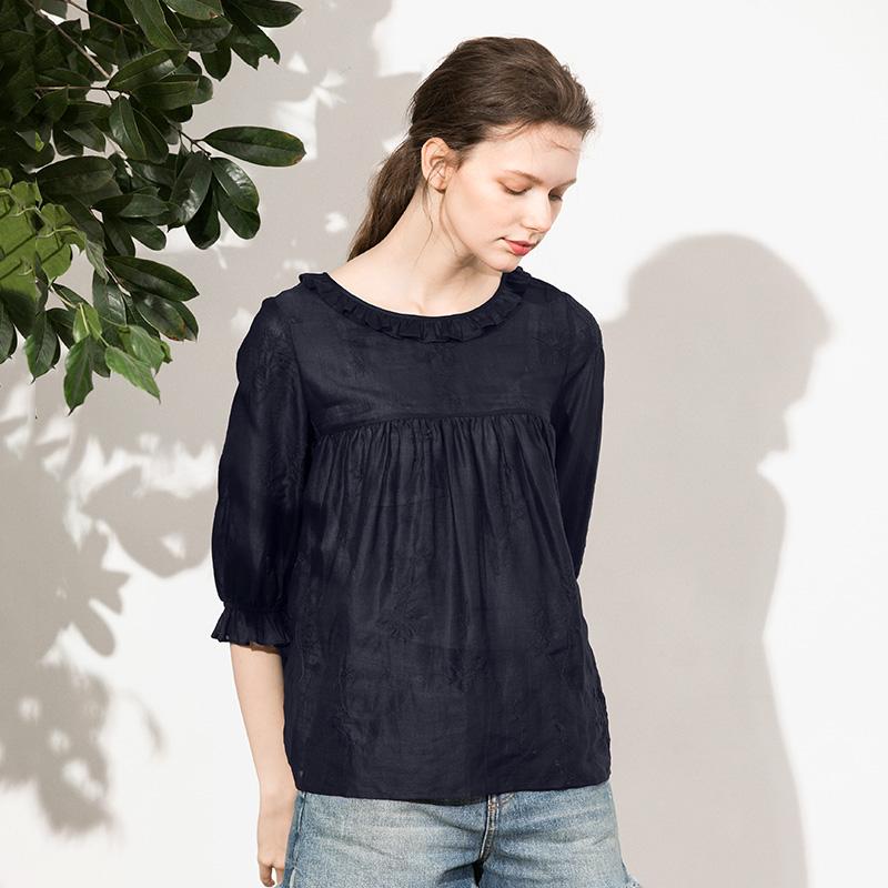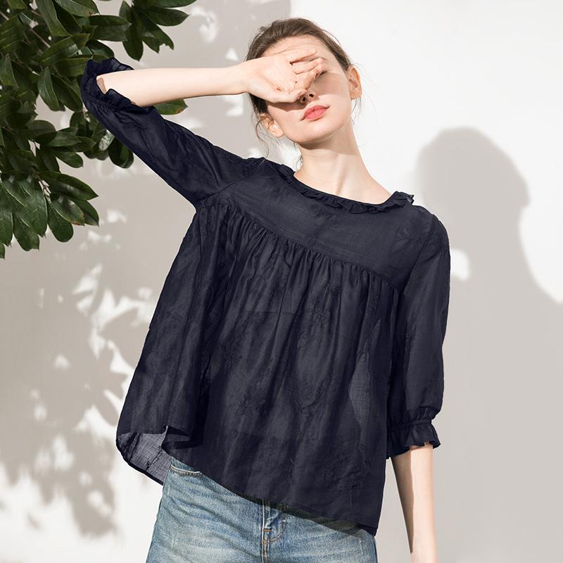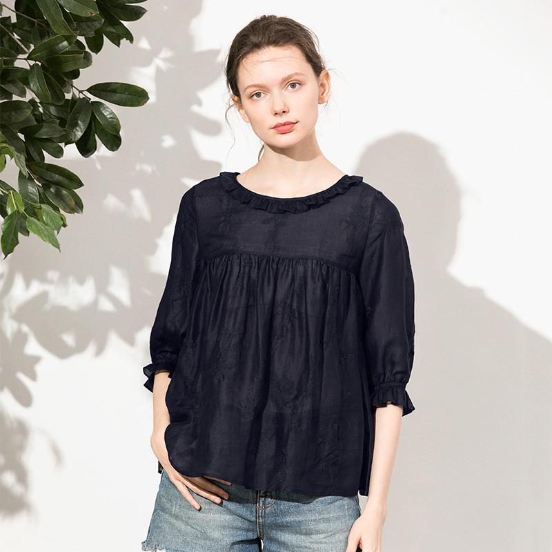 The playful fungus-edged neckline is much sweeter than a regular T-shirt, and the elegant and airy white color is not enough. The surface of the clothes is also embroidered with exquisite embroidery, which gives people a pleasant and delicate texture to the touch. It is visually elegant, beautiful and fresh, and has a girlish sweetness when the breeze blows. Ramie itself has good moisture absorption and breathability, which is 3-5 times that of cotton fiber. Among all fabrics, ramie is as light and thin as silk and has the coolness of silk. It is easier to care for and more durable than silk fabrics. Worry about silk For those who want the quality of silk without wearing it, this fabric is comparable to silk, so you can buy it with your eyes closed.