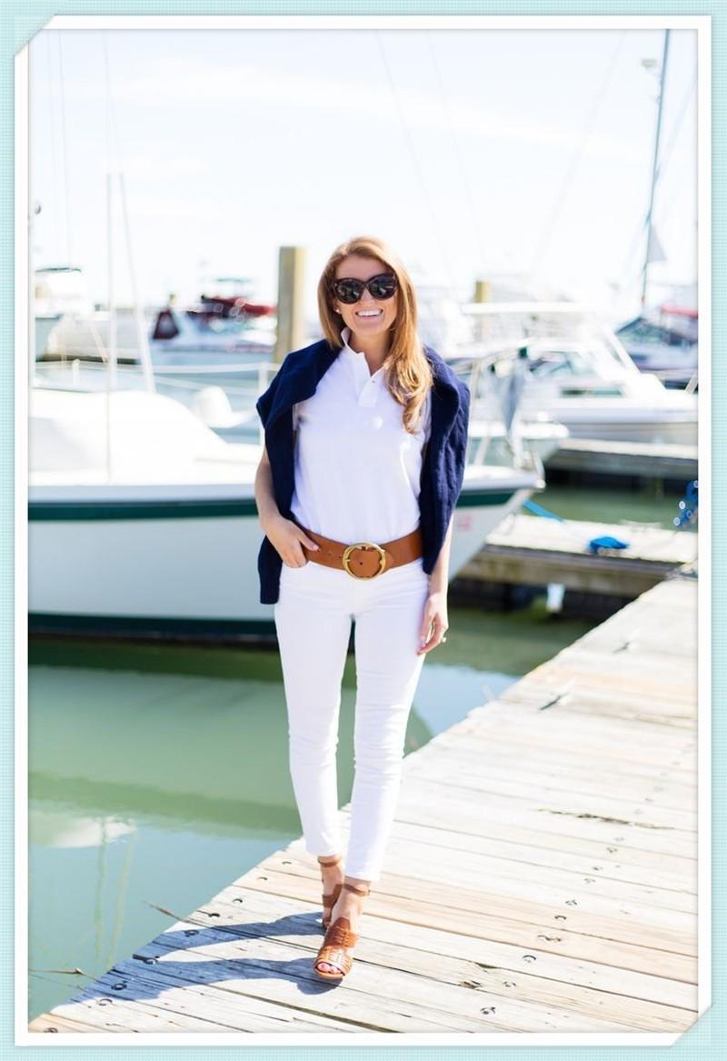 Wide-striped POLO shirts are very suitable for normal casual wear. Girls who are slightly fat should pay attention to other items when choosing wide-striped POLO shirts, and choose simple and elegant styles, so as to make up for the wide The fancy feel brought by the striped POLO shirt.