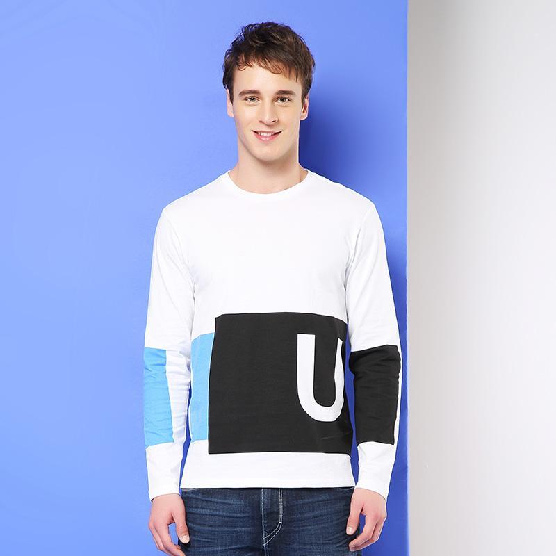 This T-shirt is mainly white and has contrasting sleeves for a more layered design. The abstract contrasting geometric decoration on the body creates an artistic style, and the personalized simple tailoring makes it more delicate and delicate, releasing a refreshing and natural atmosphere.