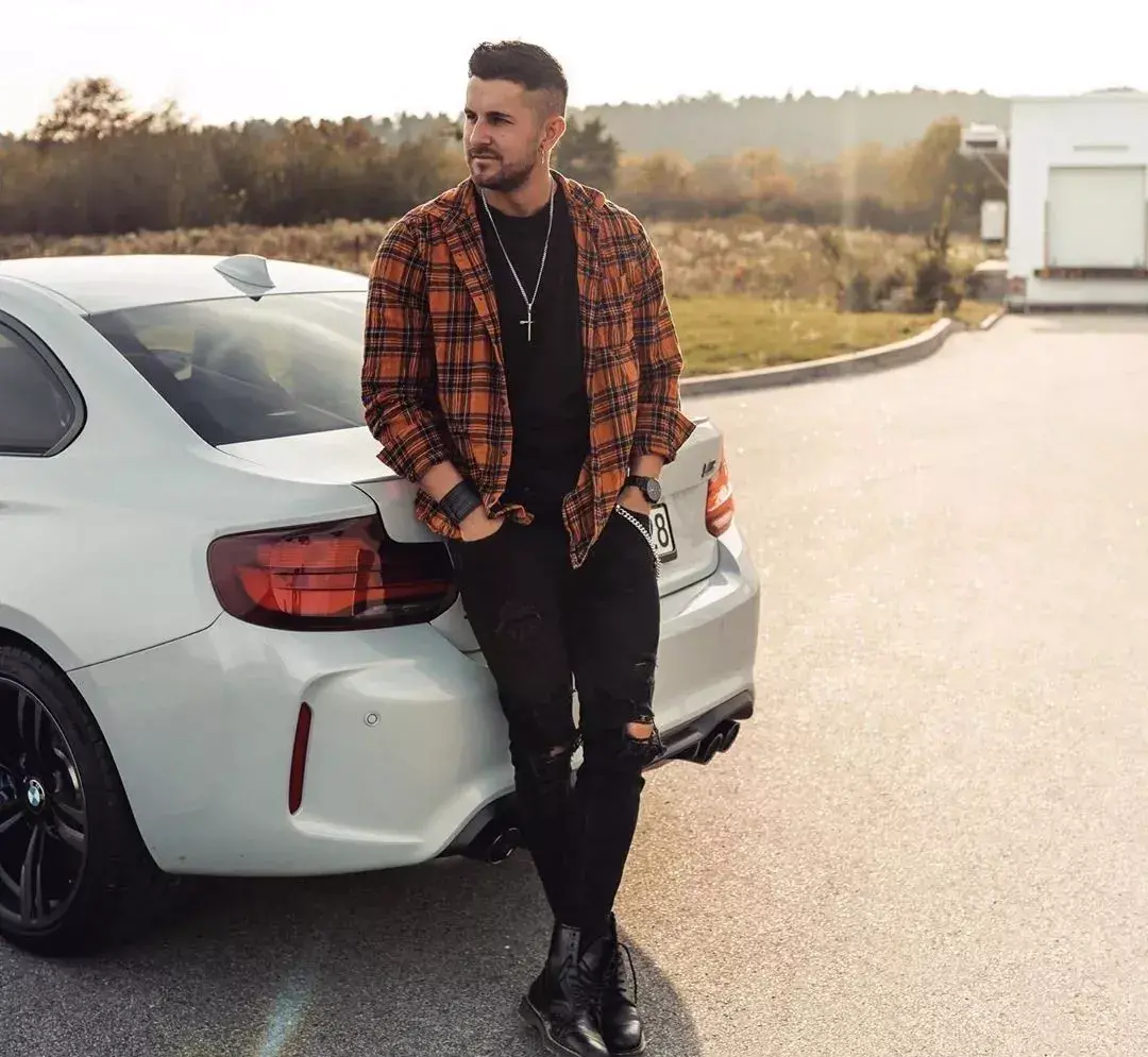 Wearing loose and ripped jeans on the lower body just shows the bohemian character. The more fancy plaid pants and necklace can also be used as a simple plain T-shirt. Add some playful elements.